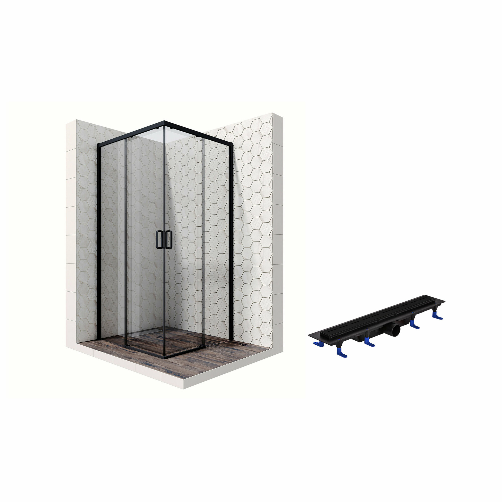 Комплект квадратного душевого ограждения с линейным трапом Ambassador Queen Black 11011204-ST7, с EasyClean, 100 х 100 см