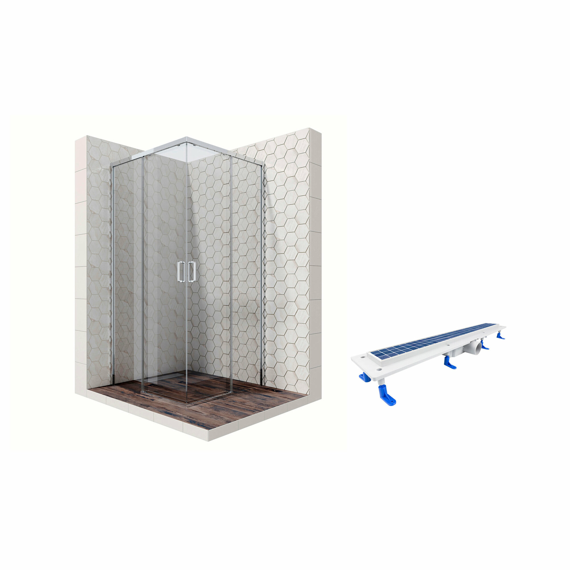 Комплект квадратного душевого ограждения с линейным трапом Ambassador Queen Black 11011204-ST7, с EasyClean, 100 х 100 см