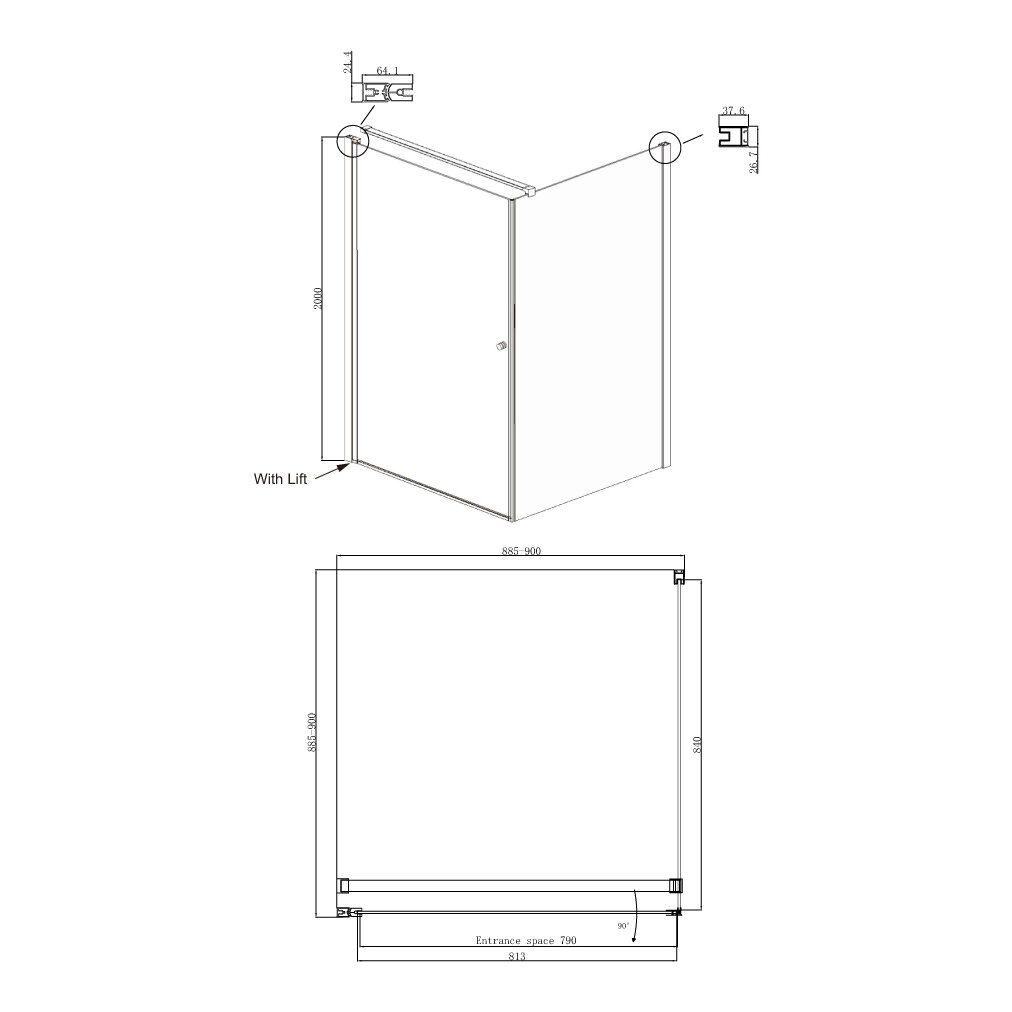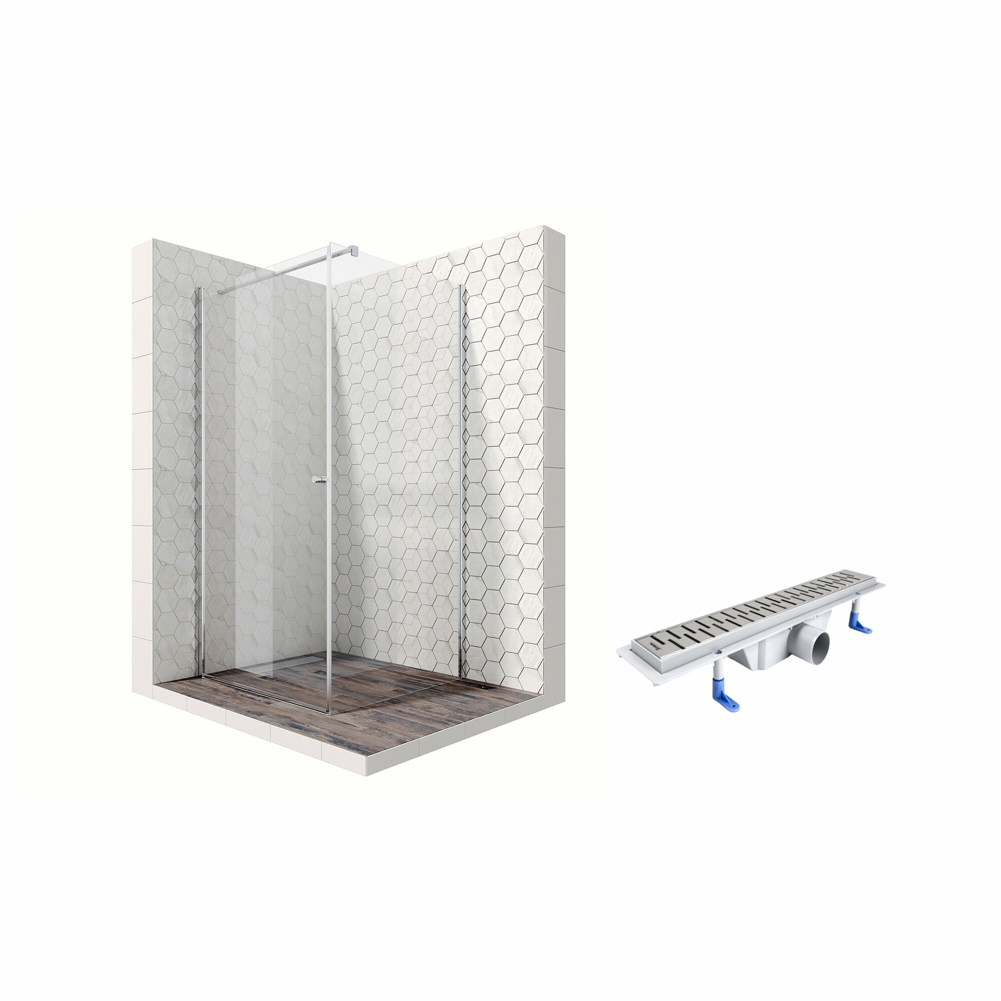 Душевой уголок 90х90 с трапом и распашной дверью Ambassador Nord 13011103-ST5: душевое ограждение из стекла 6 мм, профиль хром интересное: