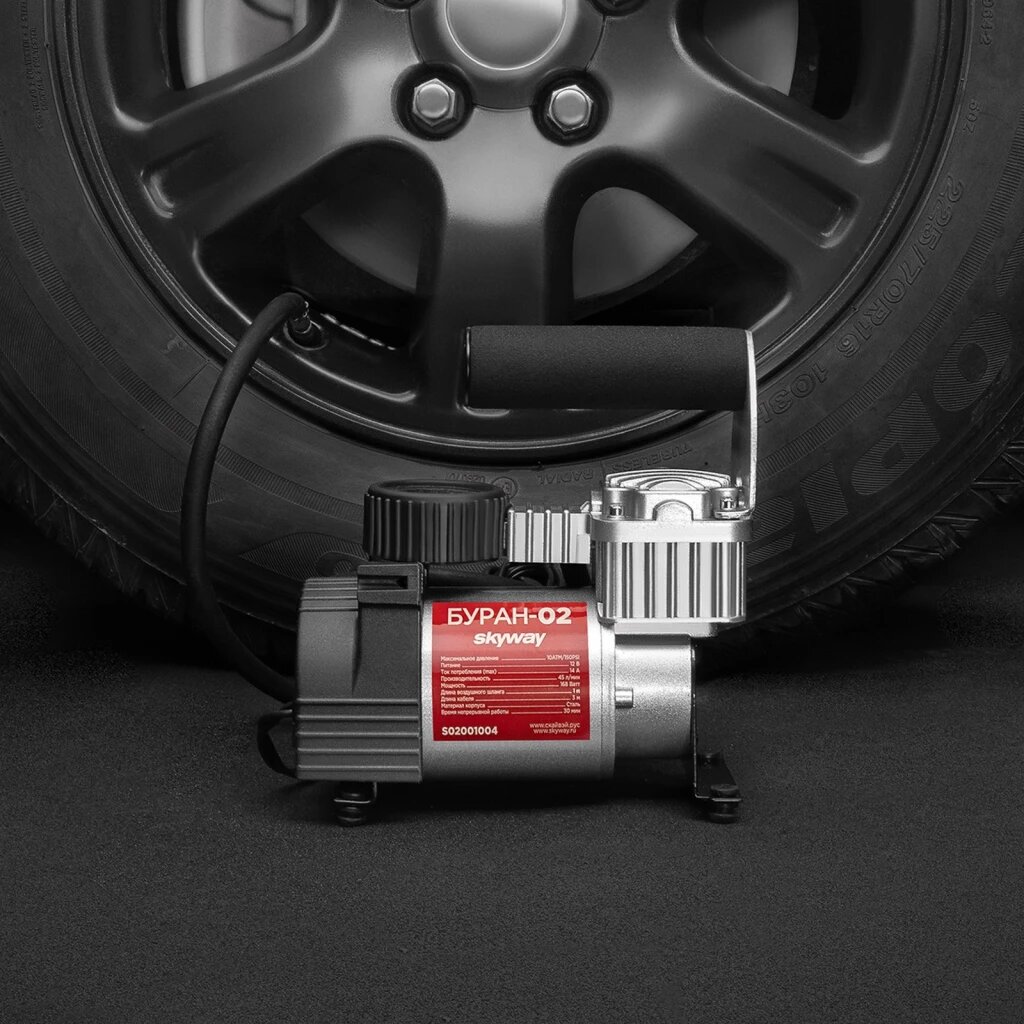 Компрессор автомобильный воздушный металлический Буран 02 45 л/мин / Автонасос электрический Skyway, S02001004