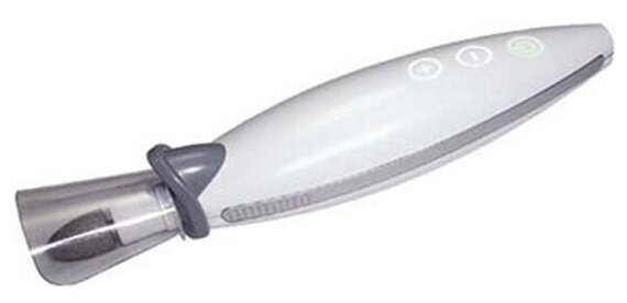 и дело не делает). Беды этого: 1 Материал: пластик, а не железо 2 Слишком высокая самая низкая скорость 3 Сильно шумит (в сравнении) 4 Управление: сенсор из-за хвата нажимается случайно 5 Подсветка: закрывается рукой, приходится переворачивать (и тогда случайно нажимается сенсор и аппарат, и так слишком быстрый на минимуме, начинает работать еще быстрее)) А еще фонарь иногда может от прикосновения отвалиться (он на магните, не ломается, но все же это лишнее) (6) Насадки: вроде ок, но, похоже, они несколько более жесткие, а с напылением -- более крупнозернистые; некритично, но лучше без этого) |