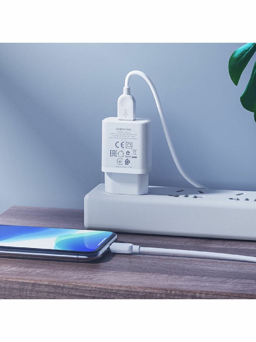Сетевое зарядное устройство BOROFONE BA52A Gamble 1xUSB с Кабелем USB - Lightning, 2.1A, белый