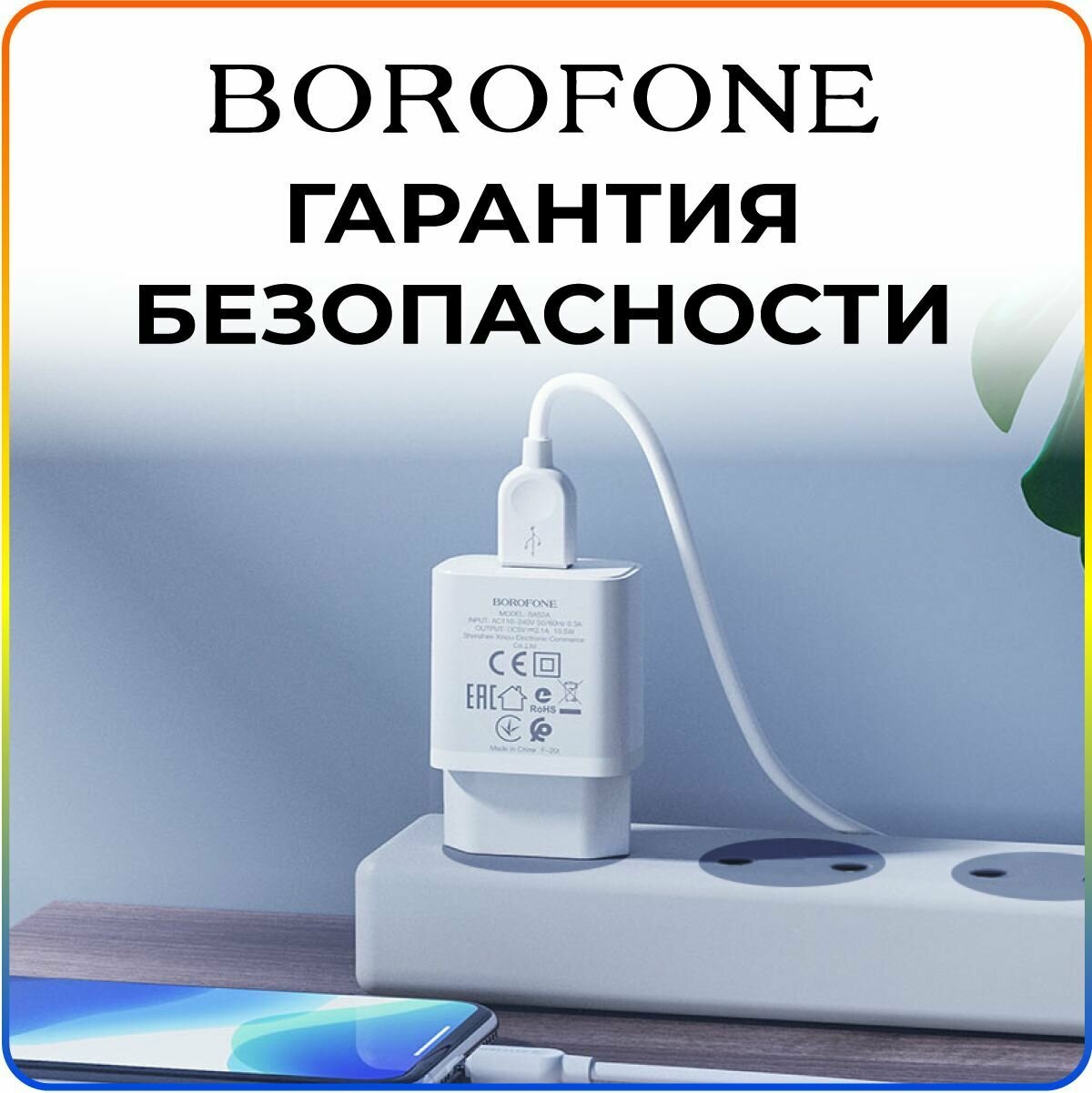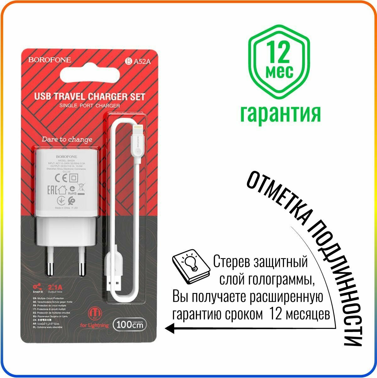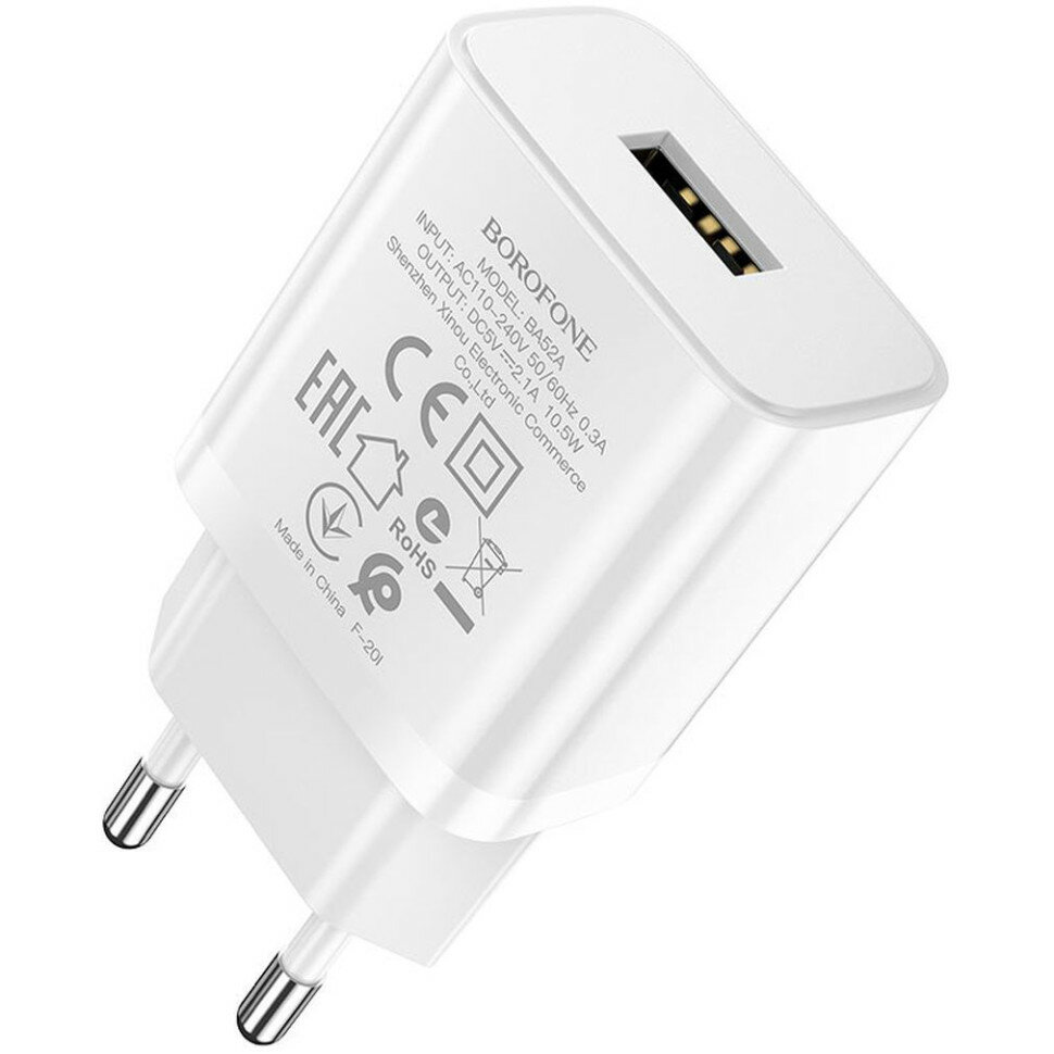 Купить Сетевое зарядное устройство Borofone BA52A, USB, 2.1 А, кабель Lightning, 1 м, белое 9088830