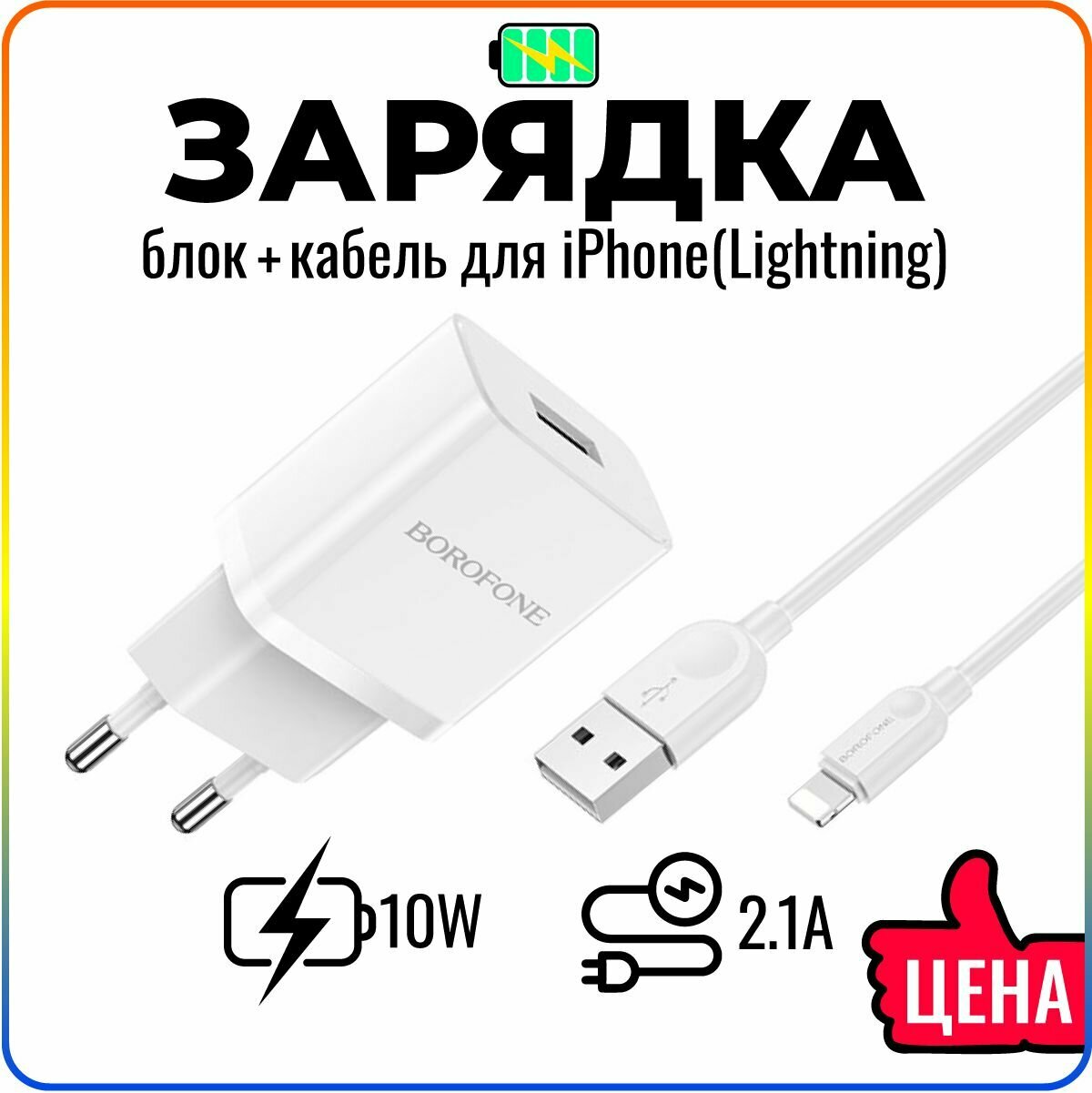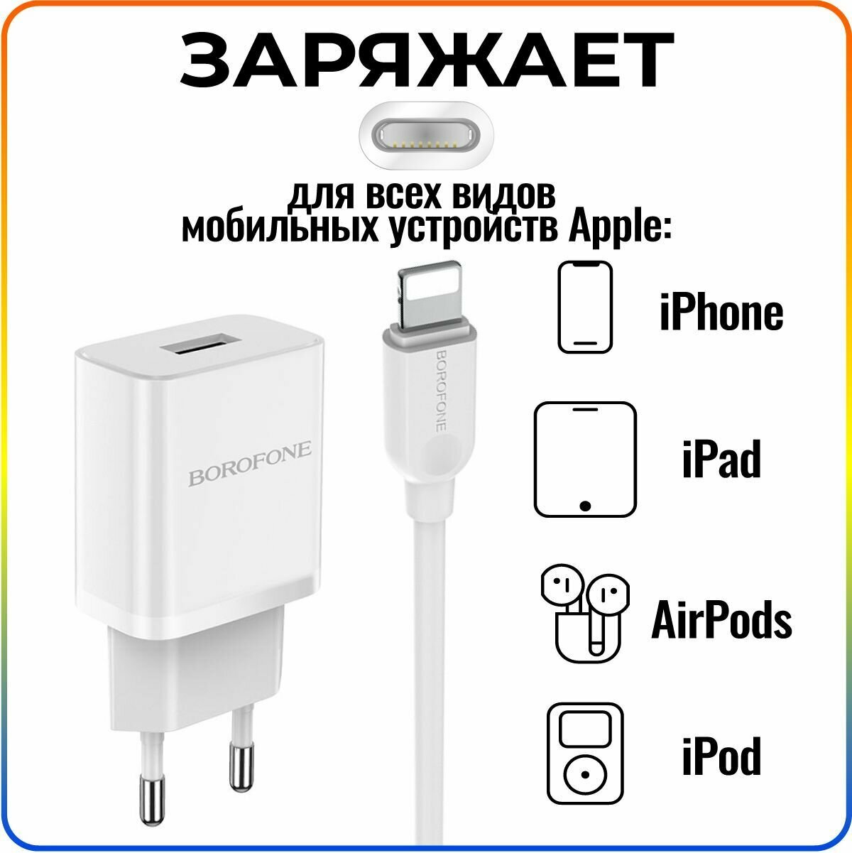 Быстрая зарядка для iPhone с кабелем Lightning в комплекте / адаптер питания для телефона, смартфона / сетевое зарядное устройство / BOROFONE BA52A