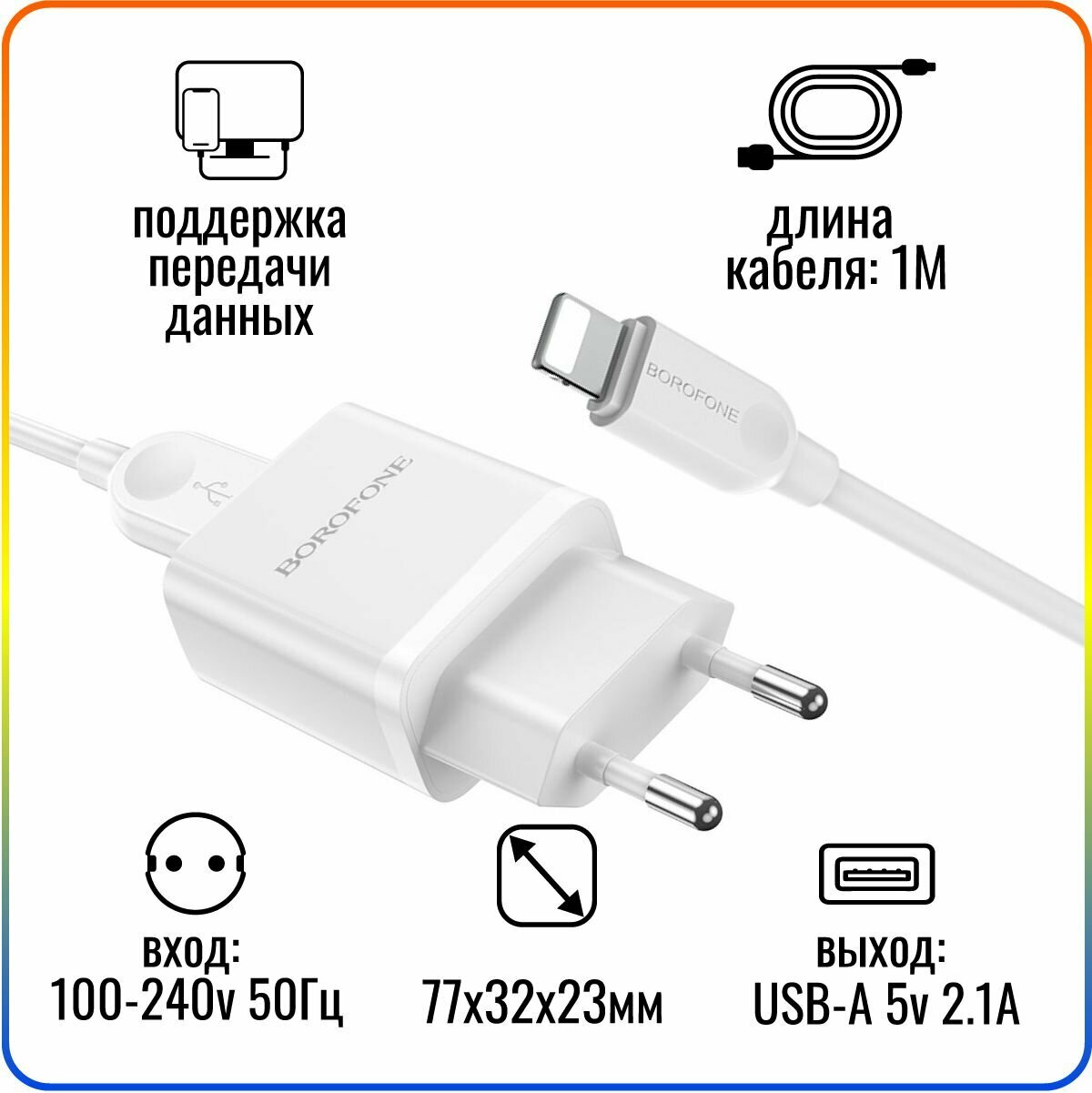 СЗУ BOROFONE BA52A Gamble 1xUSB, 2.1А + кабель Lightning 8-pin, 1м (белый)
