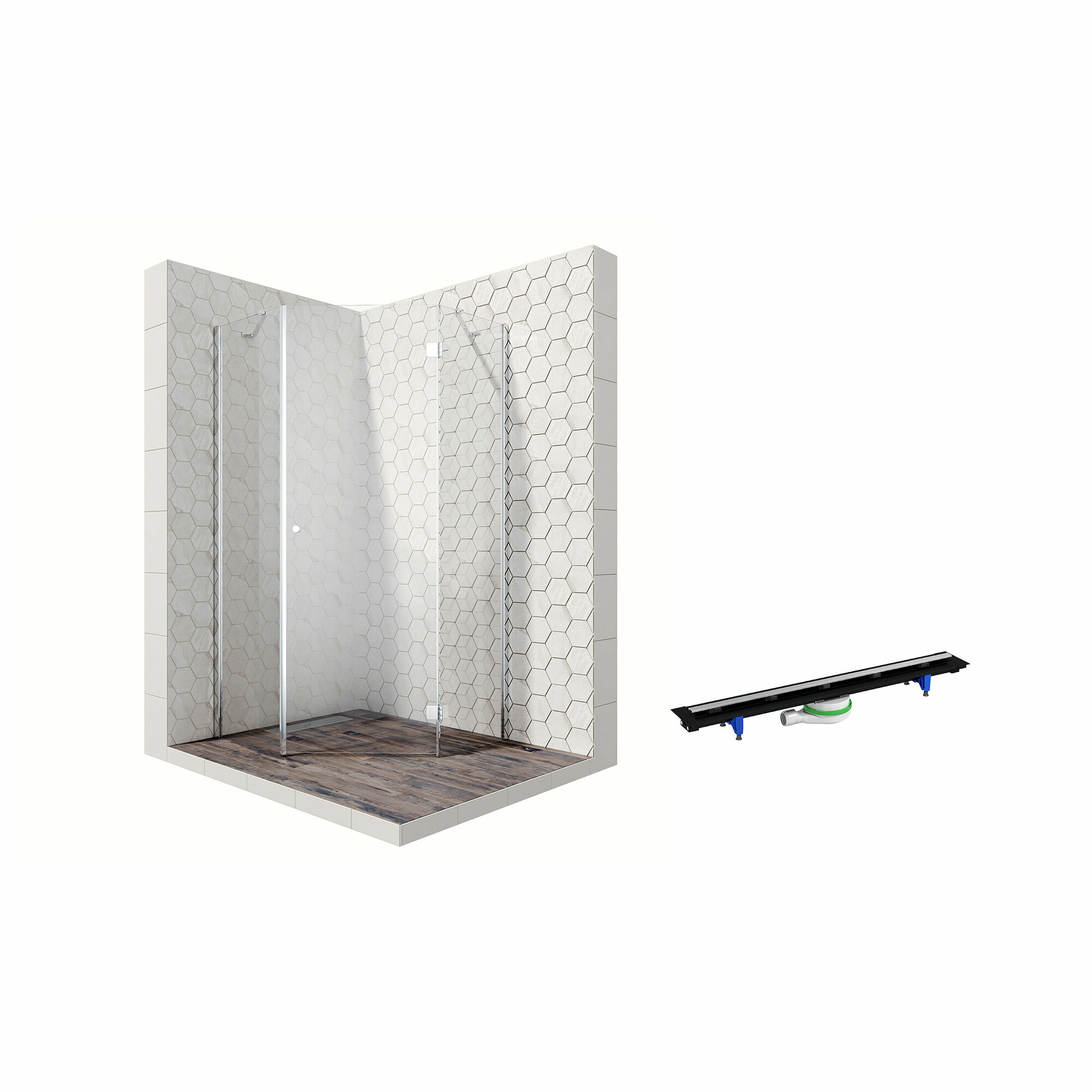 Комплект пятиугольного душевого ограждения с линейным трапом Ambassador Diamond 12011112R-PR3, с EasyClean, 100 х 100 см