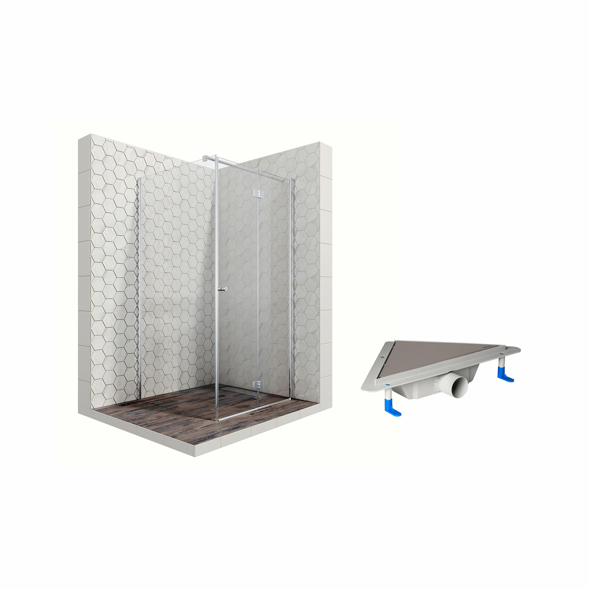 Душевой уголок 90х90 с трапом и распашной дверью Ambassador Diamond 12011105L-ST7: левостороннее душевое ограждение из стекла 6 мм, профиль хром
