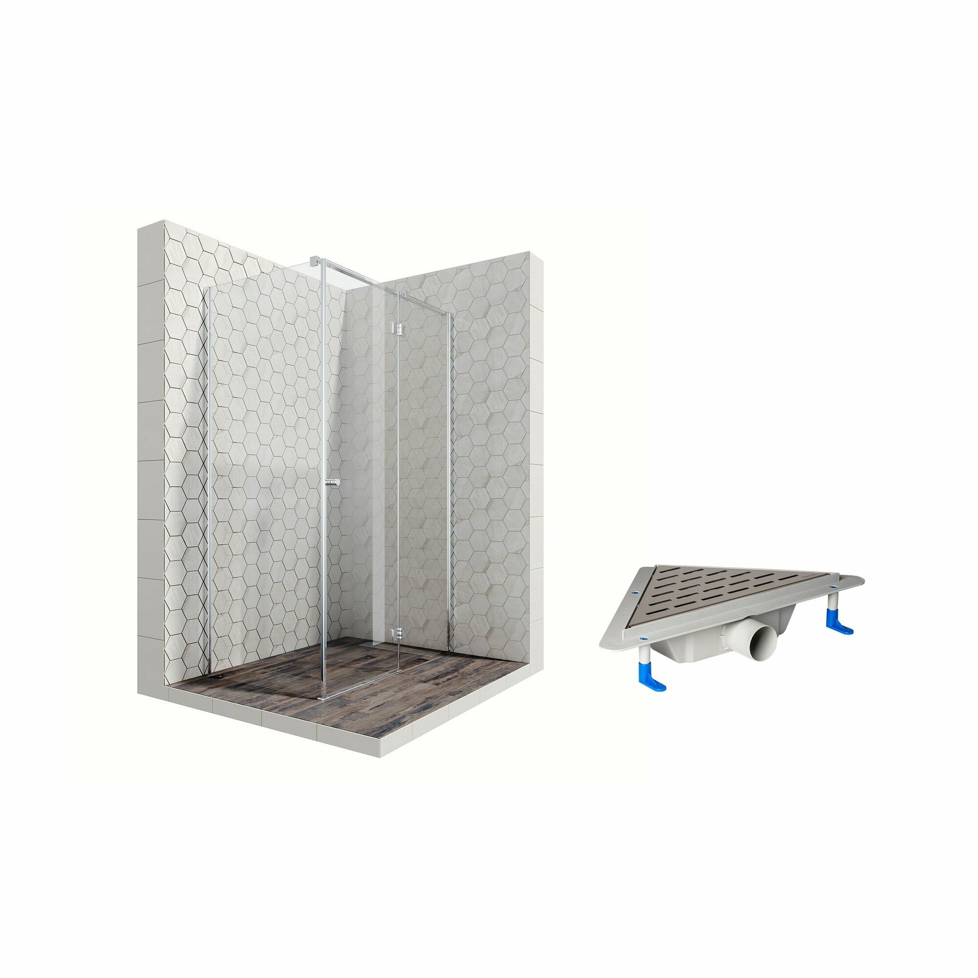 Комплект прямоугольного душевого ограждения с угловым трапом Ambassador Diamond 12011104L-ST5, с EasyClean, 120 х 80 см