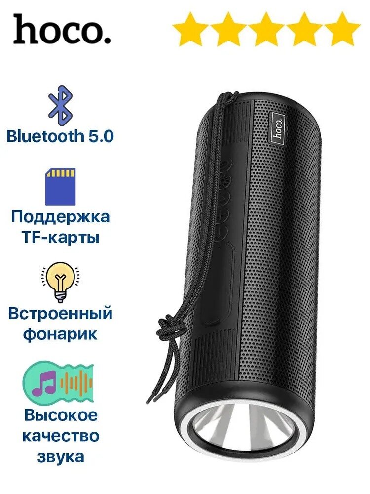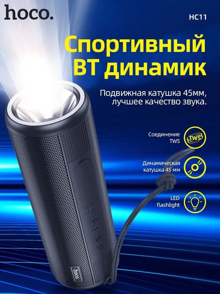 Портативная акустика HOCO HC11, Bora, Bluetooth, пластик, FM, TF, AUX, фонарь, черный (6931474762061)