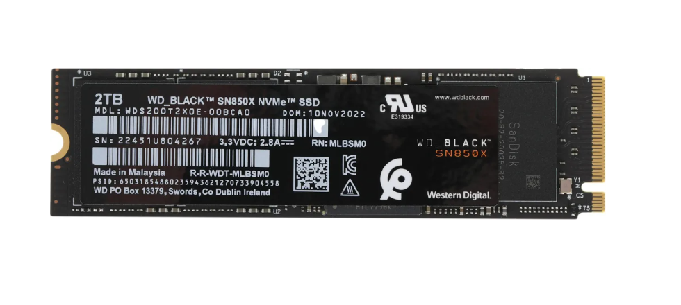 SSD диск Western Digital WD Black SN850X M.2 2280 2TB PCIe 4.0 x4 M.2 2280 (WDS200T2X0E)