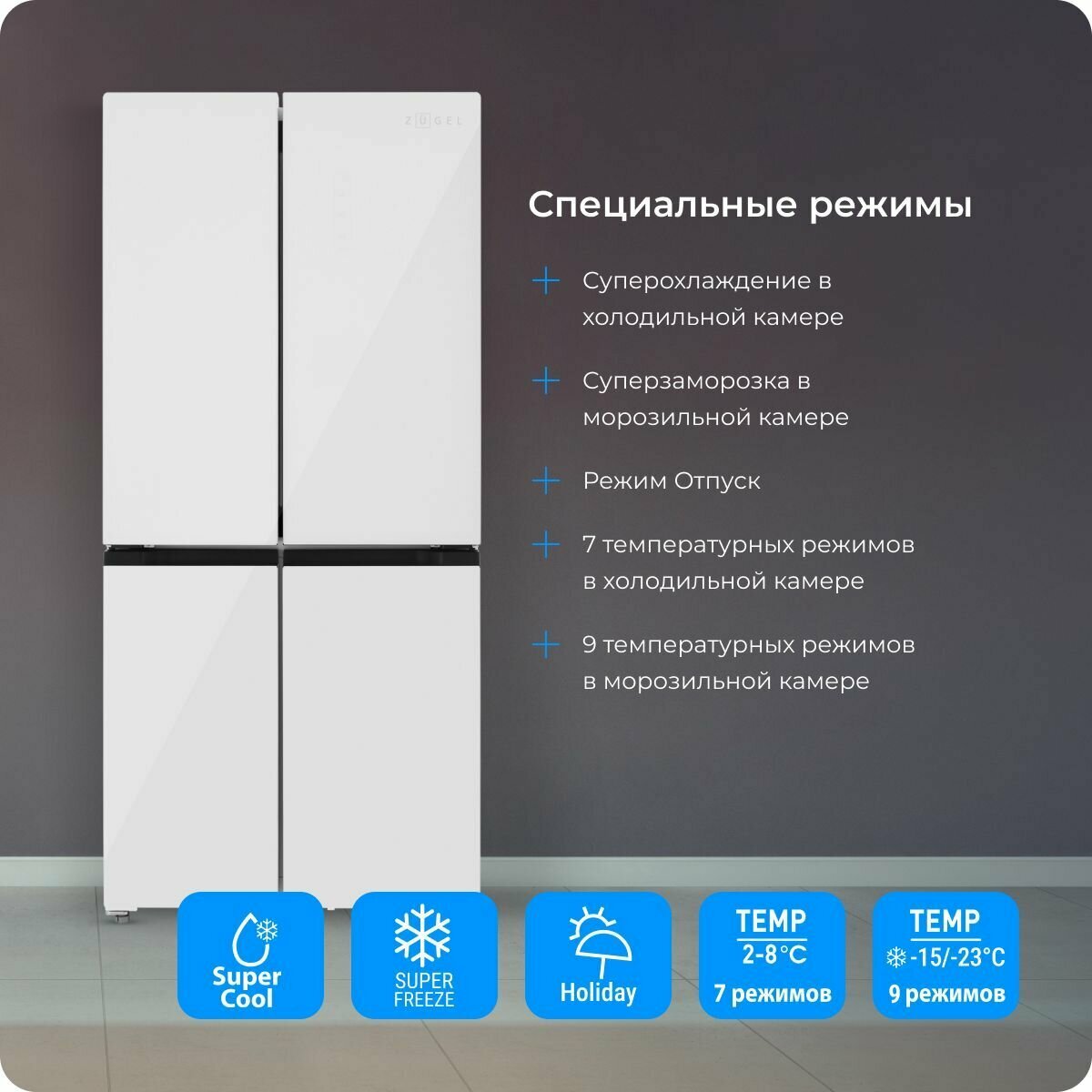 Многокамерный холодильник Zugel ZRCD430W, белое стекло