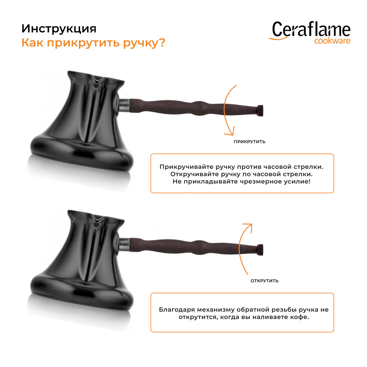 Есть ошибка в дизайне, а именно в месте крепления ручки. Все дело в том, что накручивающаяся часть имеет резьбу длиннее, чем выступающая часть, и получается, когда до упора закручиваешь ручку, ты упираешься в керамику и отрываешь с помощью резьбы выступающую часть... Получается своеобразный рычаг, который и выдирает эту пимпочку от турки, ну или делает трещину, уверен все закручивают до упора, что логично, но увы, это и отламывает ручку. |