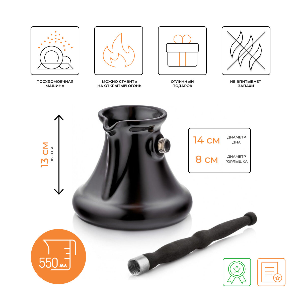 | Дополнительная информация | материал ручки: дерево; диаметр дна: 14 см, диаметр горлышка: 8 см |