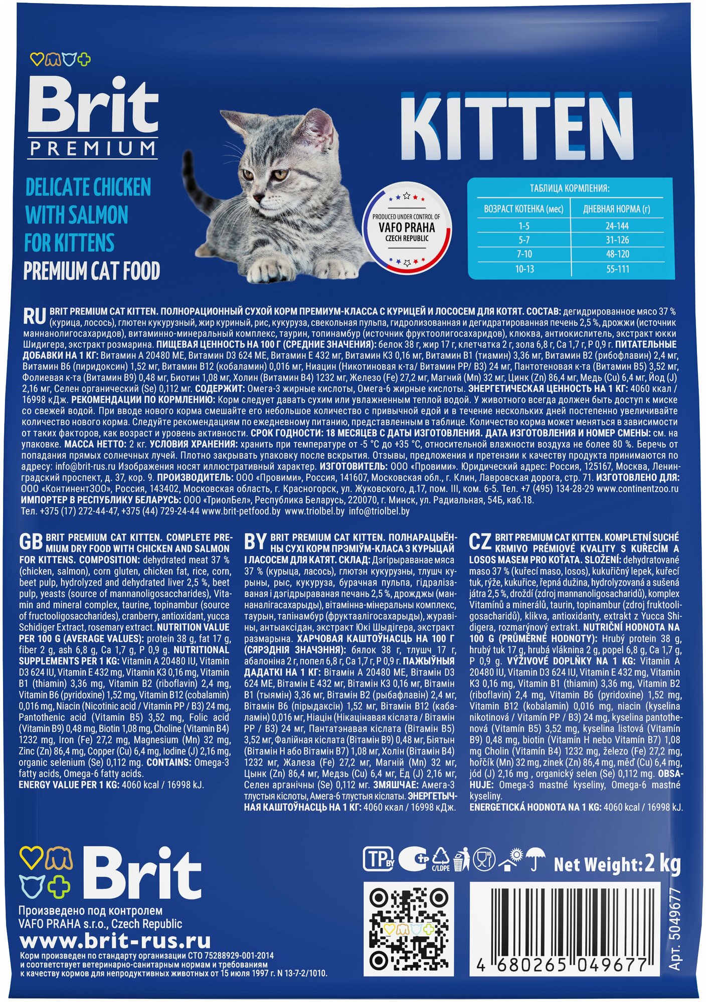 Брит Премиум Cat Kitten 2кг курица и лосось сухой для котят