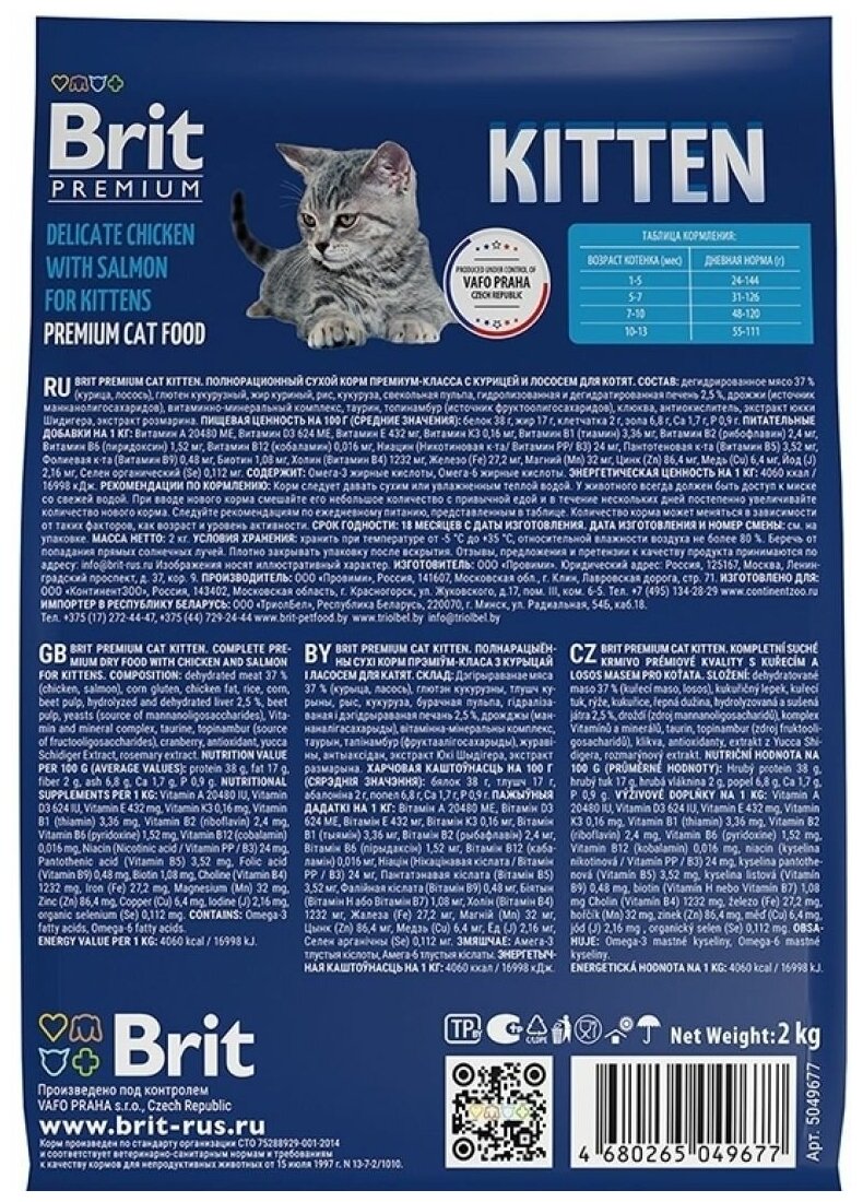 BRIT PREMIUM, Сухой корм с курицей и лососем для котят "Cat Kitten", 2кг