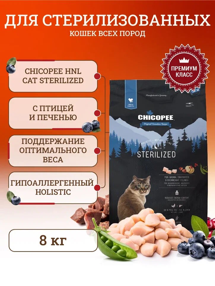Chicopee HNL Cat Sterilized сухой корм для стерилизованных кошек 8 кг интересное: