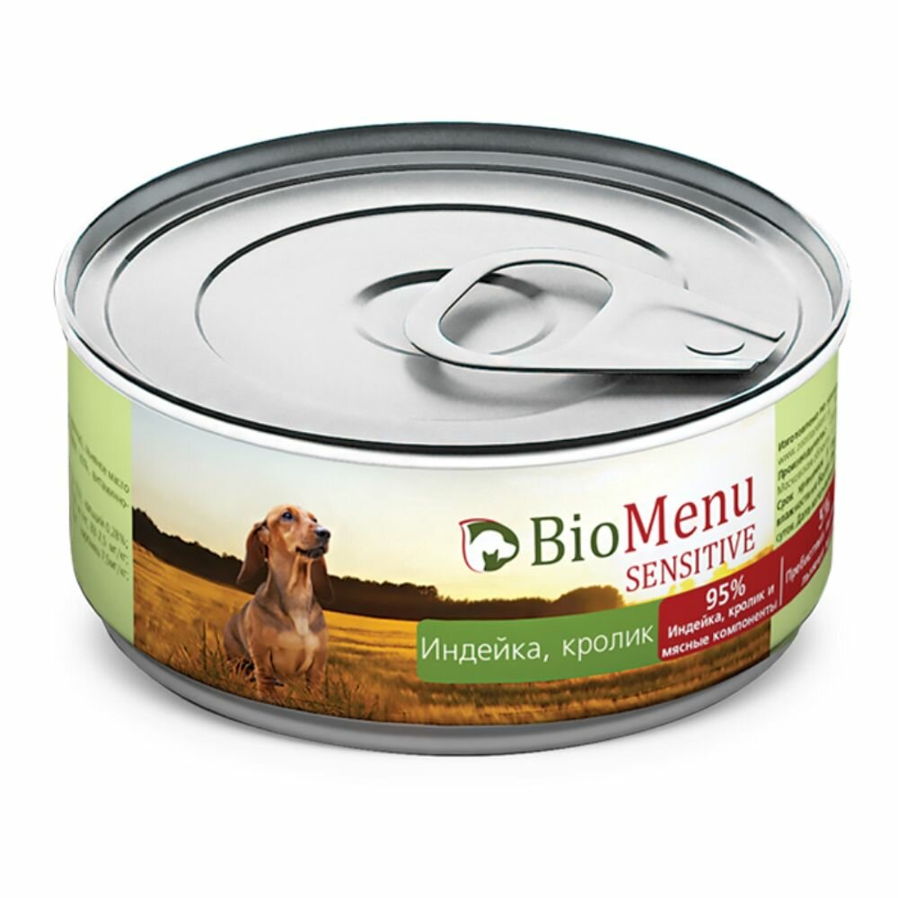 BioMenu SENSITIVE Консервы для собак Индейка/Кролик 95%-мясо 100г (24шт)
