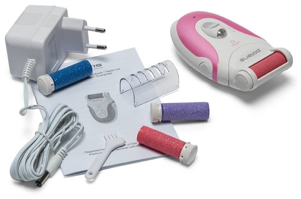 Педикюрный набор Polaris PSR 0801, 4 насадки (подсветка), белый/розовый
