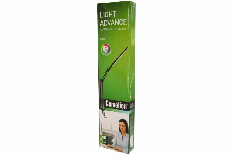 Camelion KD-821 C02 черный LED (Св-к наст.,8 Вт, 230В, 2 ур.ярк,350лм, струбцина)