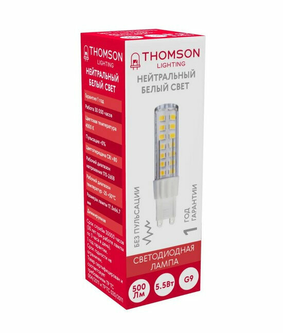Лампа светодиодная THOMSON TH-B4214 G9 220 В 5.50 Вт кукуруза прозрачная