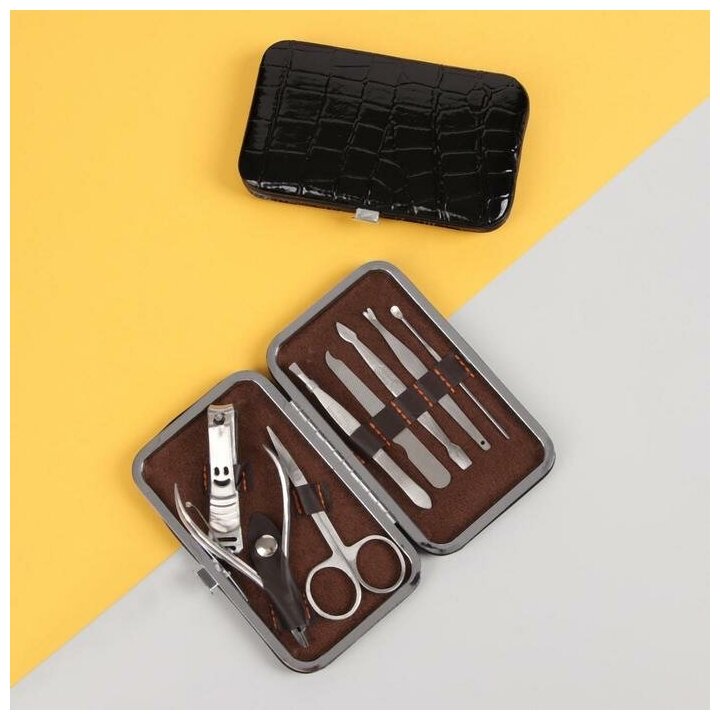 Набор маникюрный «Рептилия», 8 предметов, в футляре, цвет чёрный