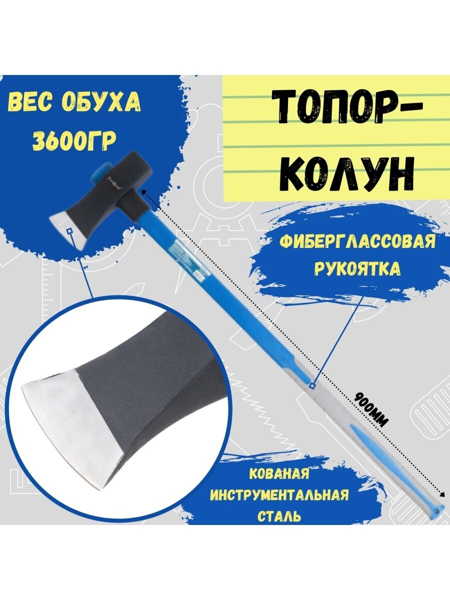 Топор-колун, фиберглассовая рукоятка 900 мм, вес 3600 г, РемоКолор Pro интересное: