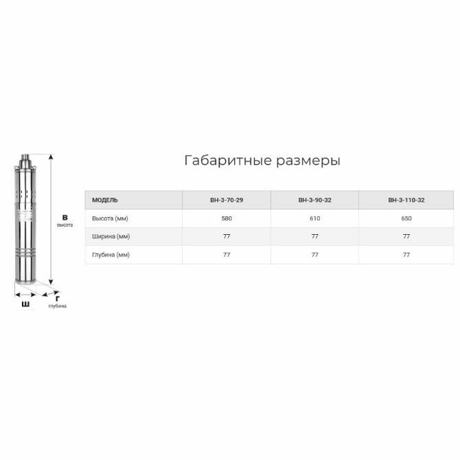 Насос скважной Jemix ВН-3-70-29 (диаметр 77 мм, кабель 20 м)