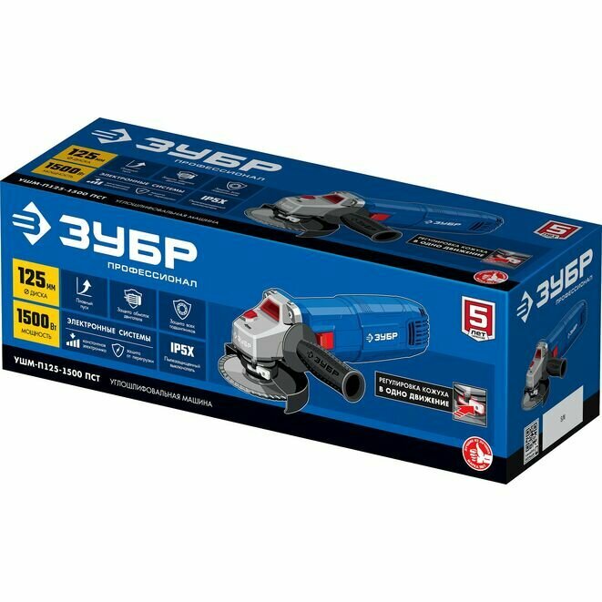 УШМ ЗУБР УШМ-П125-1500 ЭПСТ, 125 мм синий