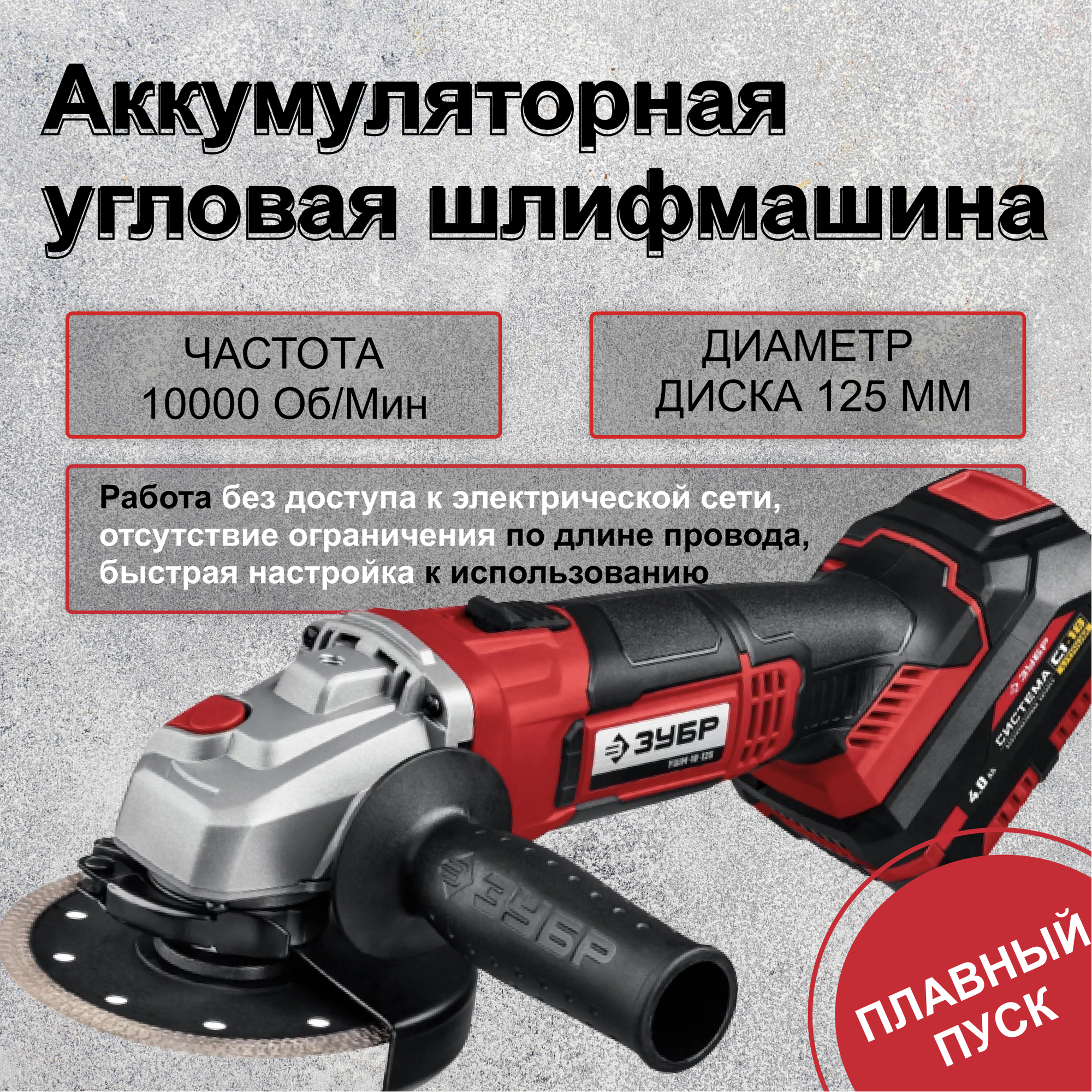 Угловая шлифмашина Зубр УШМ-18-125-41, аккумуляторная