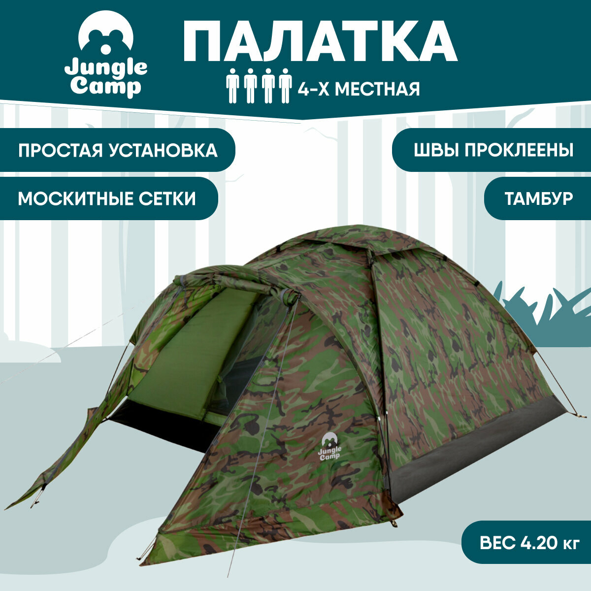 Палатка четырехместная JUNGLE CAMP Forester 4, цвет: камуфляж интересное: