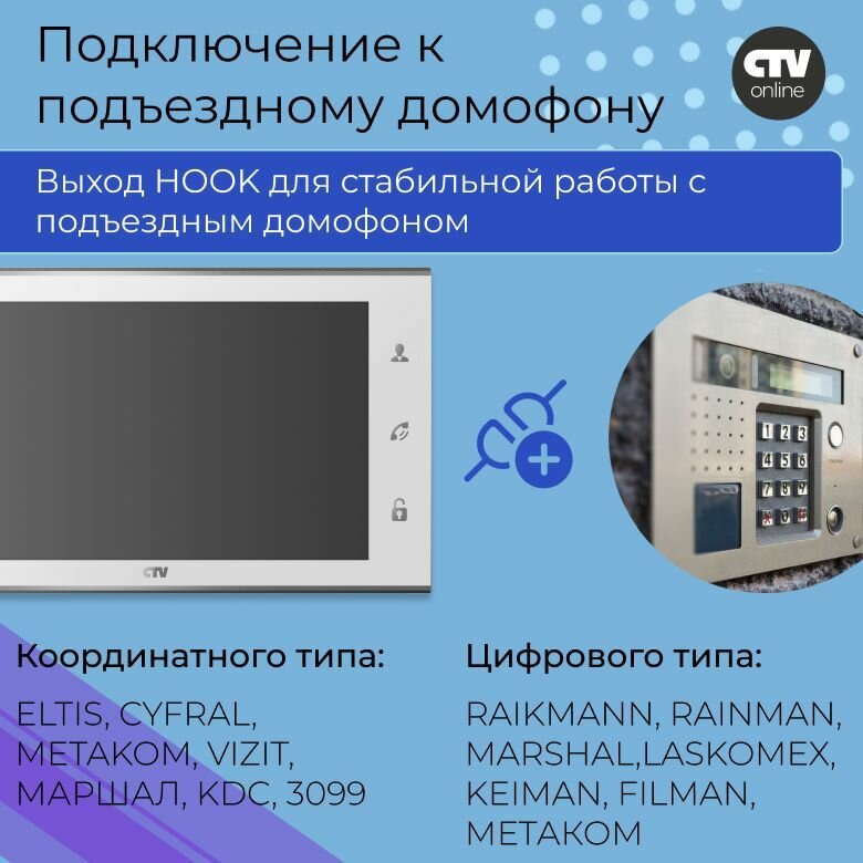 CTV-DP4105AHD Комплект цветного видеодомофона (Белый) интересное: