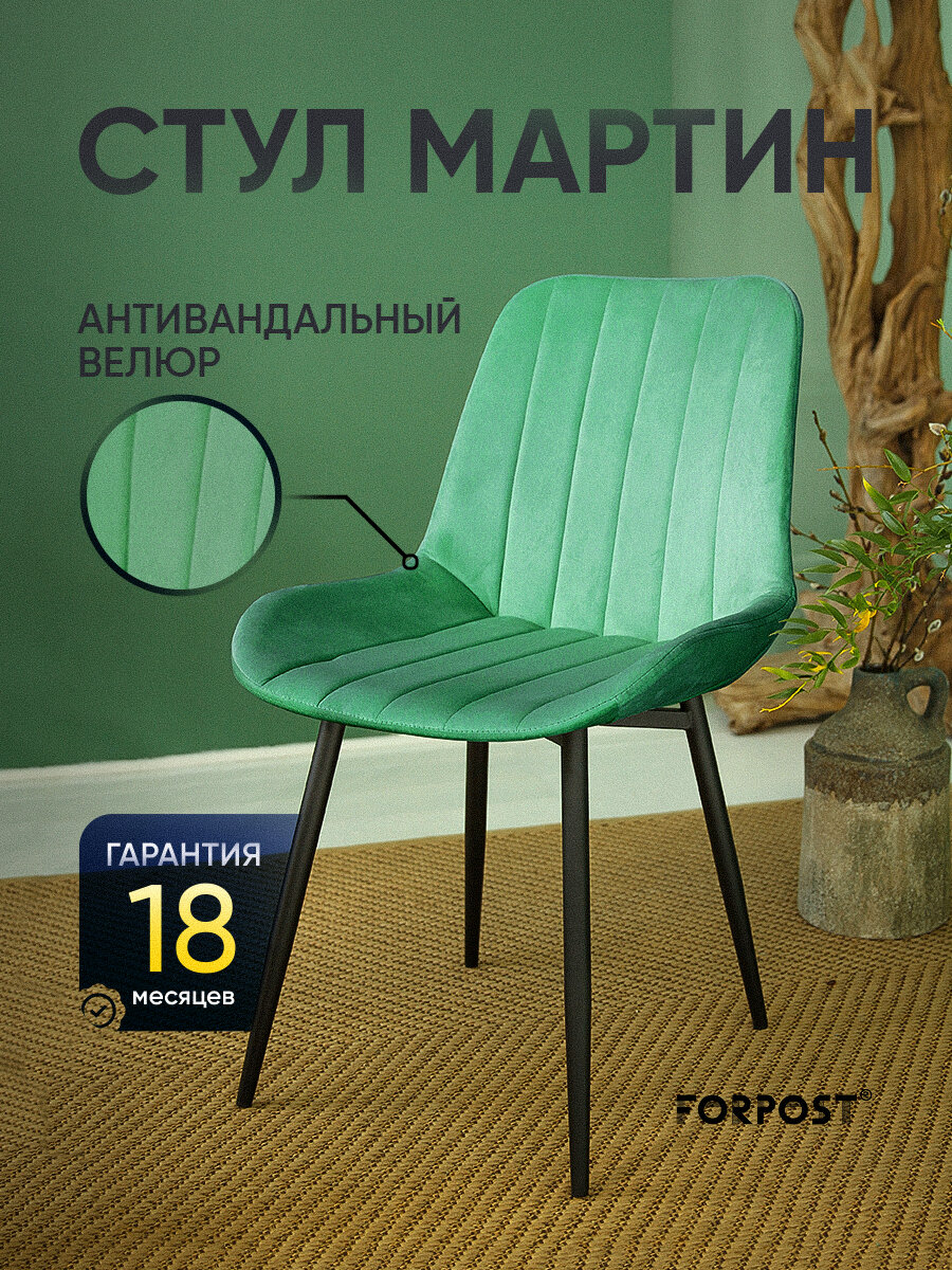 Стул для кухни мягкий со спинкой Мартин изумруд