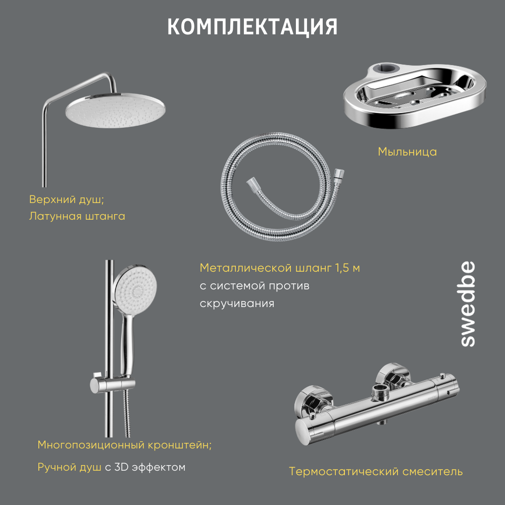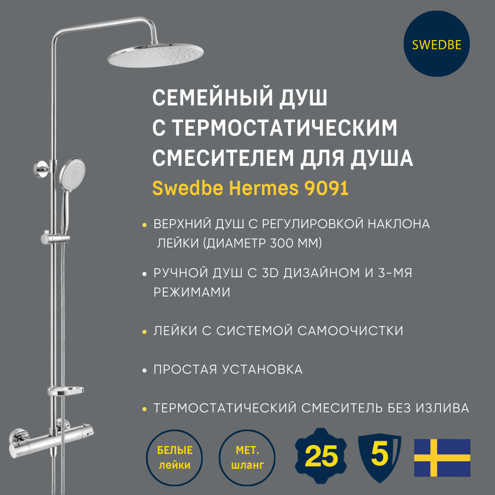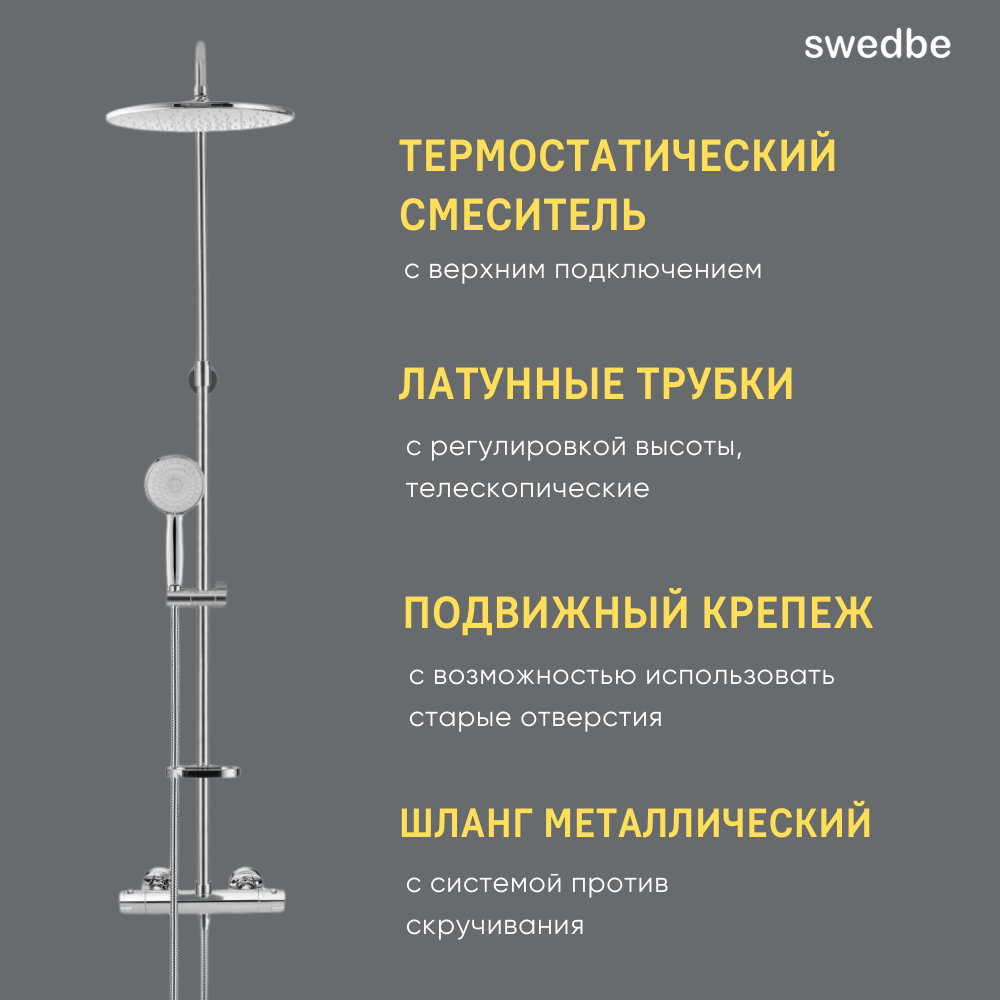 Swedbe Hermes набор семейный душ с верхним подключением и термостатический смеситель, хром, 9091 интересное: