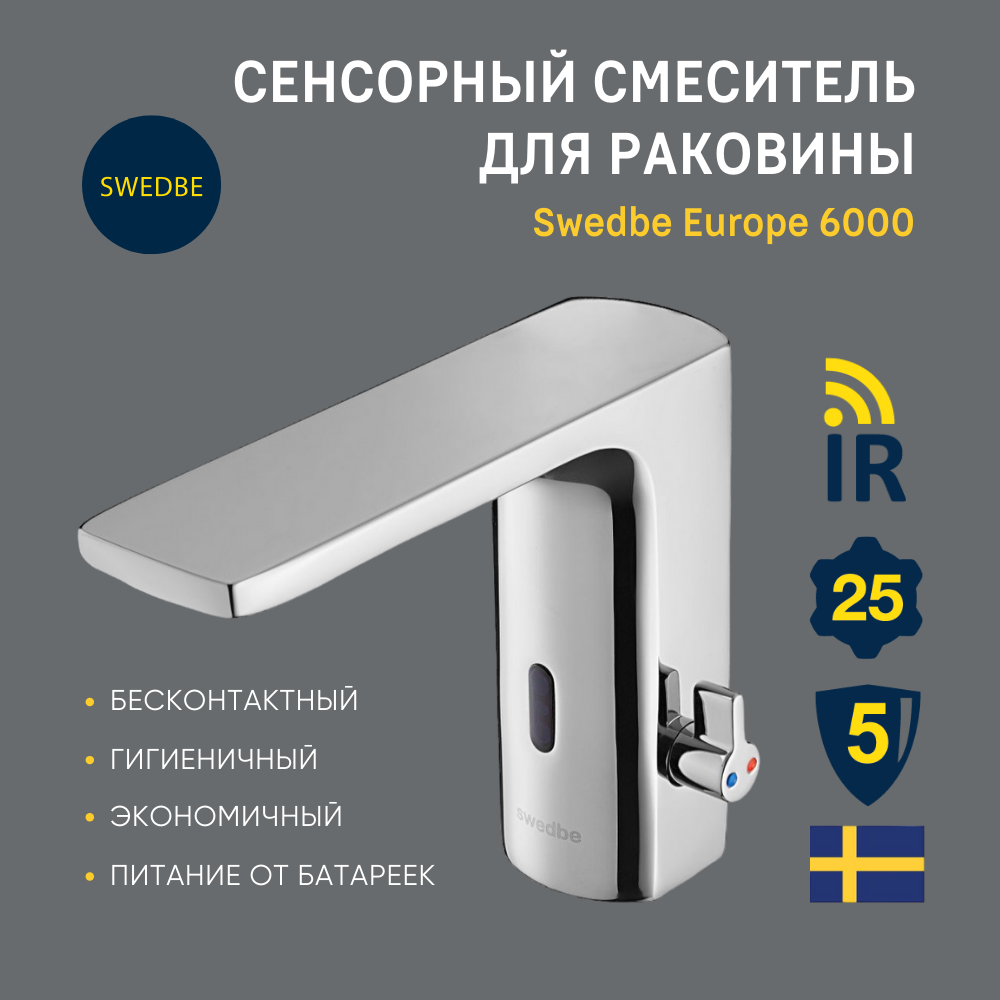 смеситель для раковины SWEDBE Europe 6000 сенсорный хром интересное: