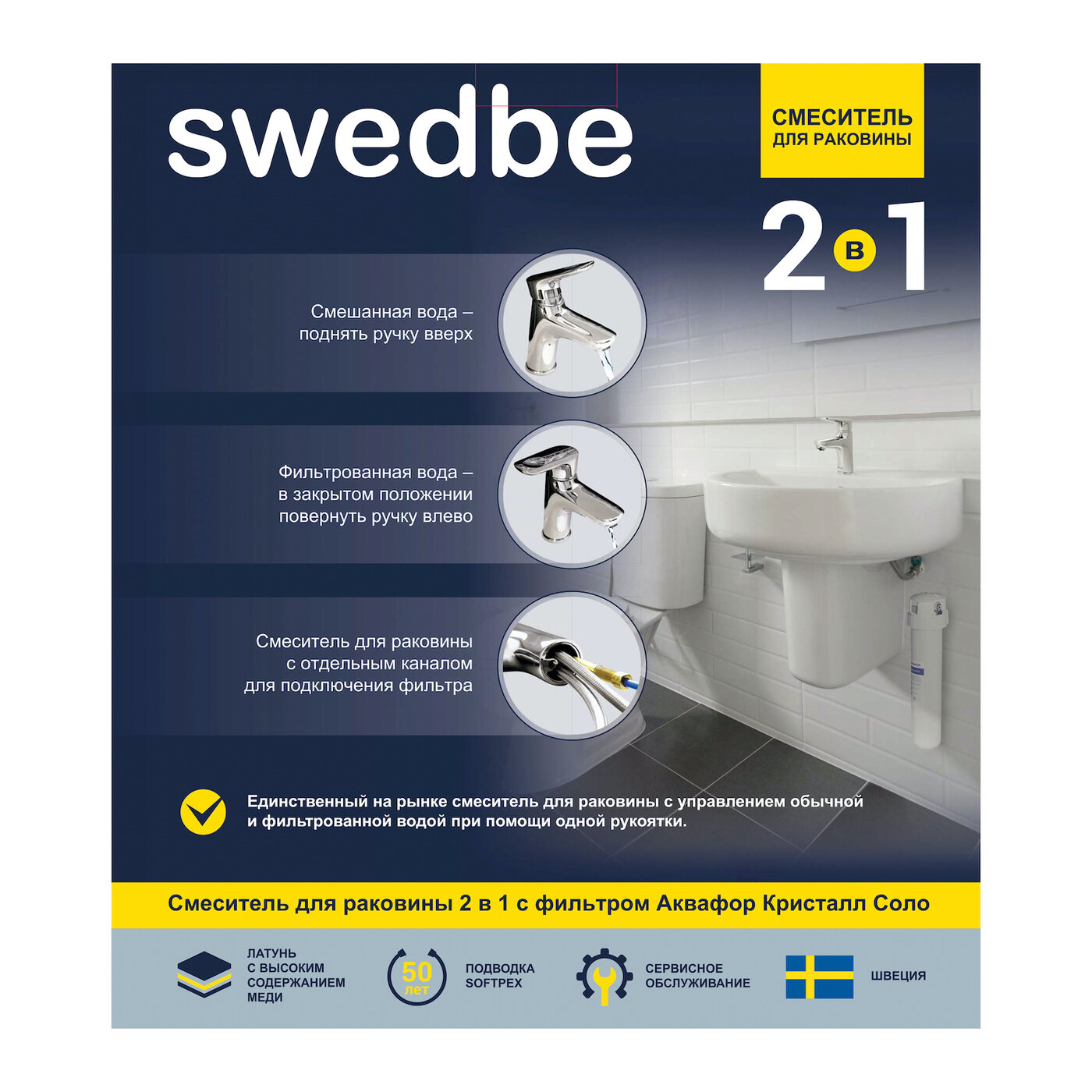 Смеситель для раковины Swedbe Venado Plus с фильтром Кристалл Соло K1615