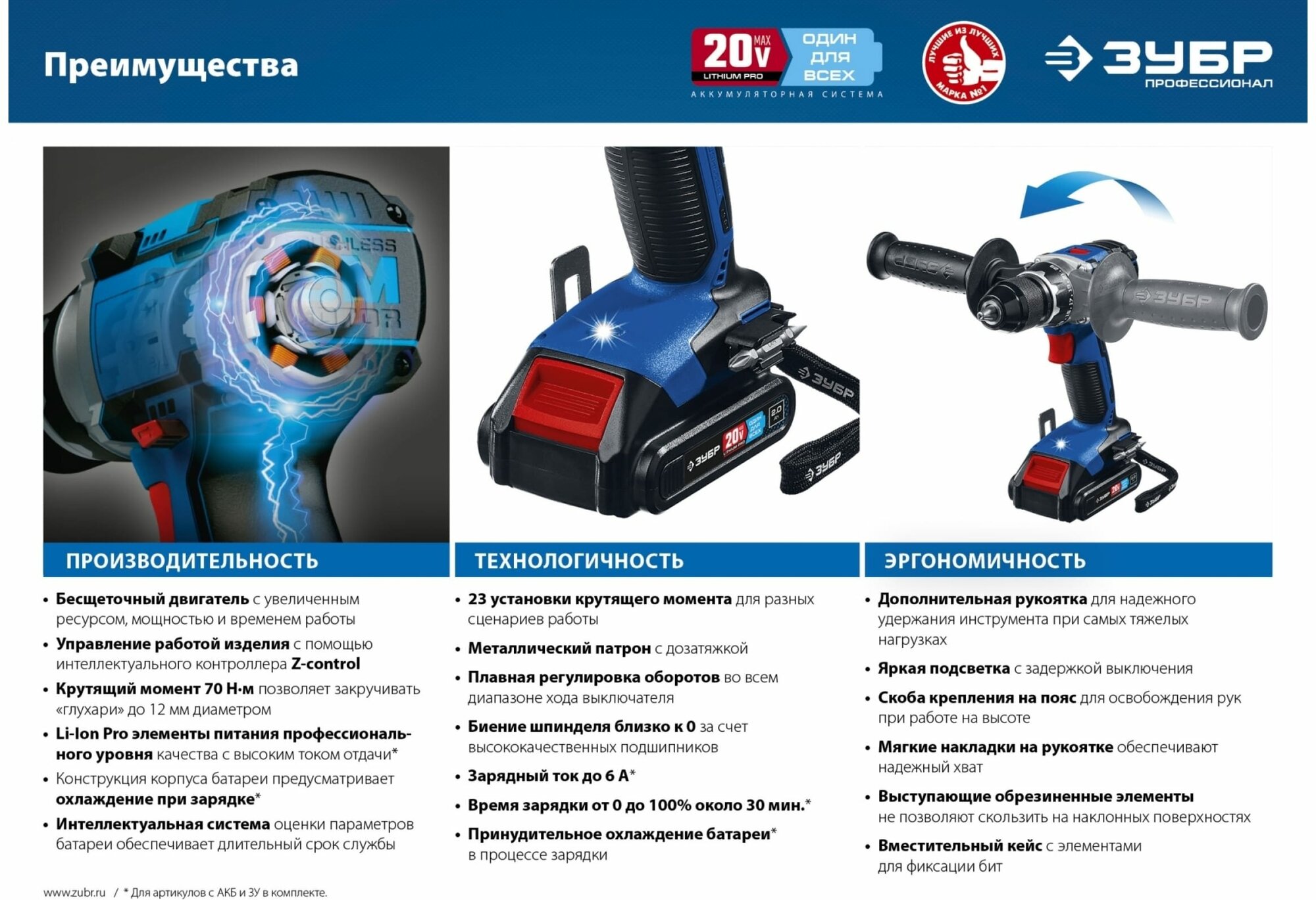 | Аккумуляторная система | ЗУБР 20V MAX Lithium PRO |