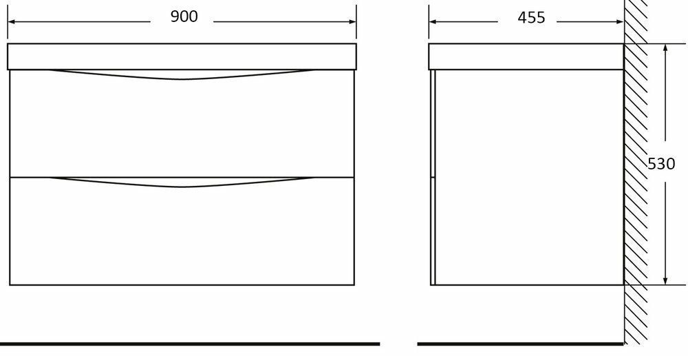 База под раковину подвесная с двумя выкатными ящиками ACQUA-900-2C-SO-RVB