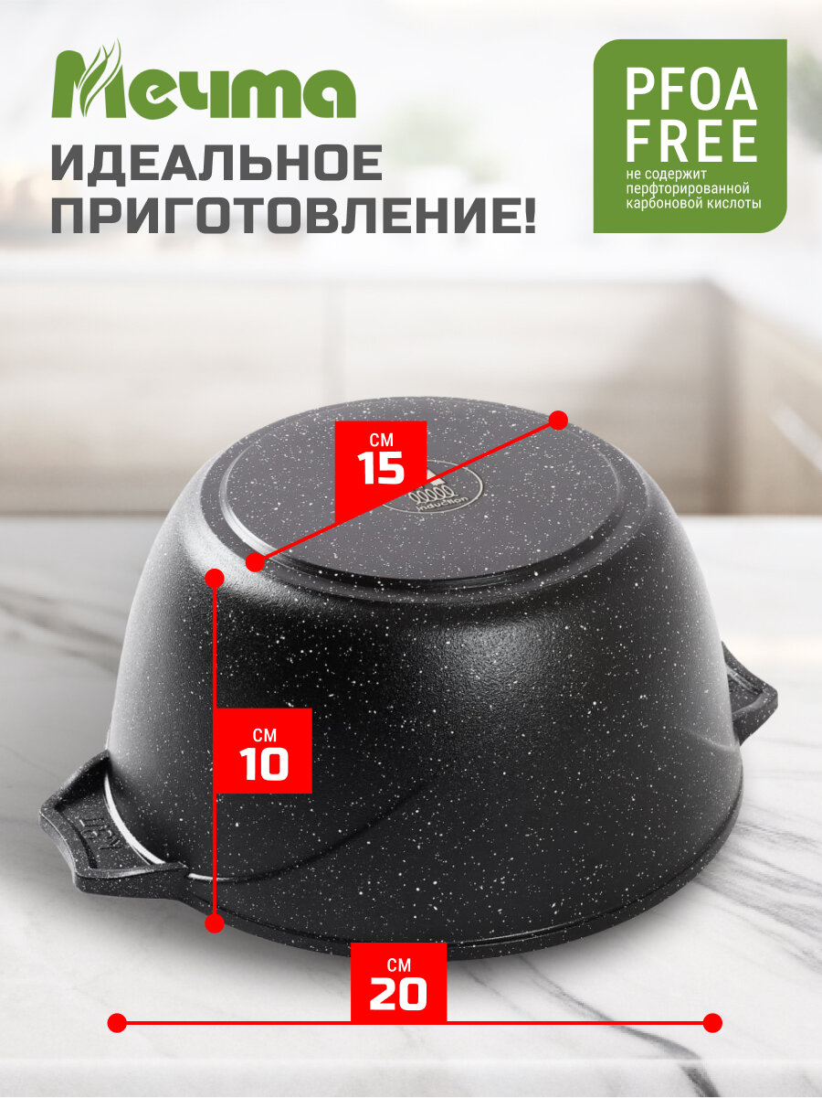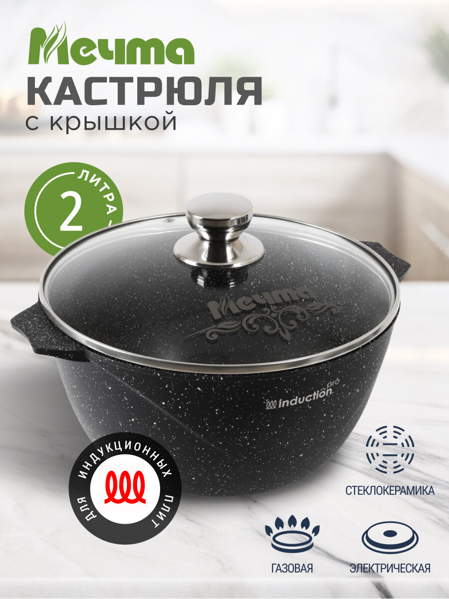 Кастрюля индукционная "Мечта" 2л Гранит с антипригарным покрытием с крышкой, можно мыть в посудомоечной машине