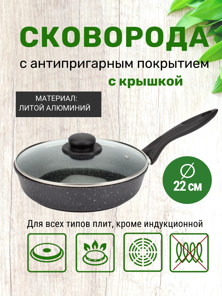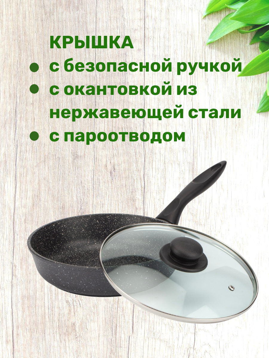 Сковорода с крышкой Мечта "Granit", с антипригарным покрытием. Диаметр 22 см, цвет черный