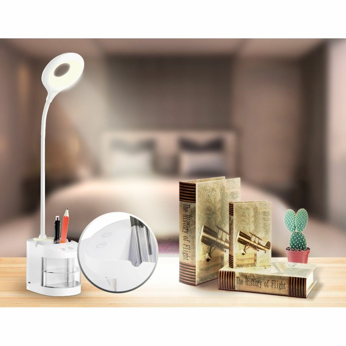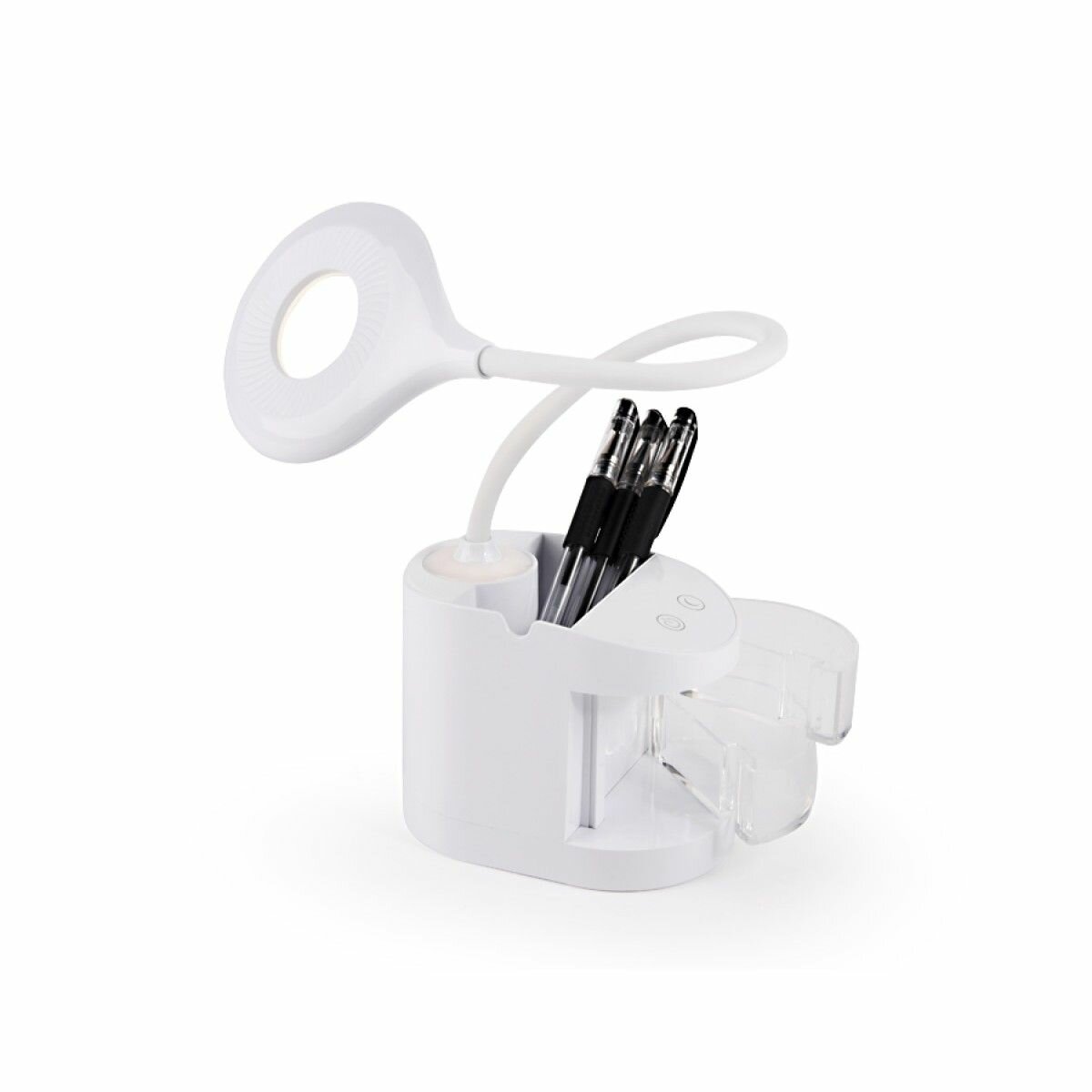 Настольная светодиодная лампа со встроенной аккумулятороной батареей и органайзером DE561 WH белый LED 4200K 4W