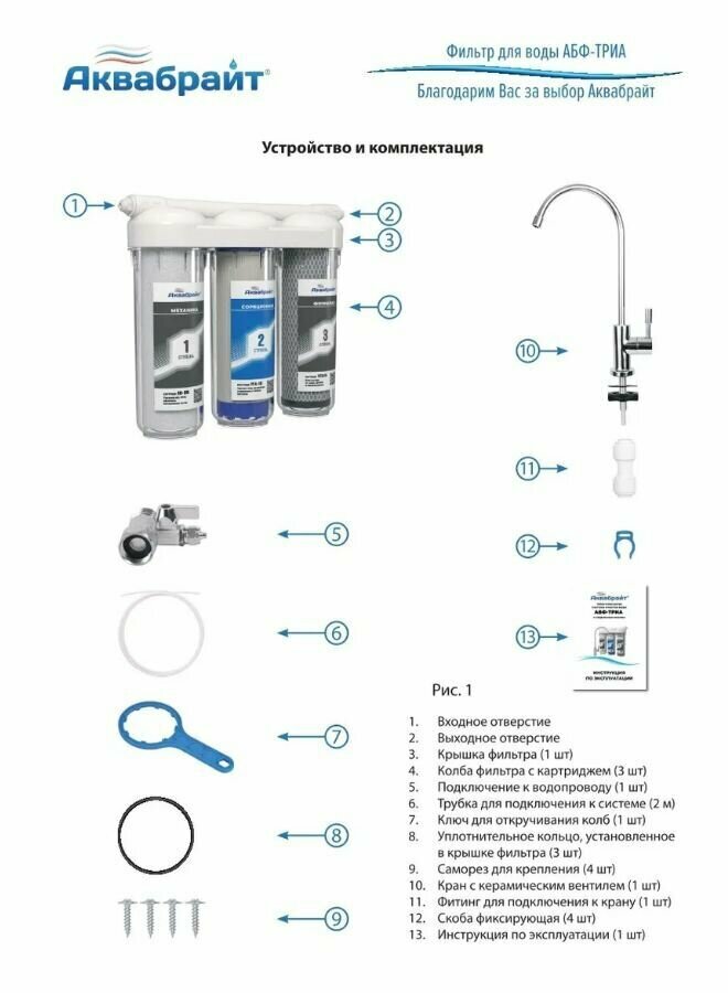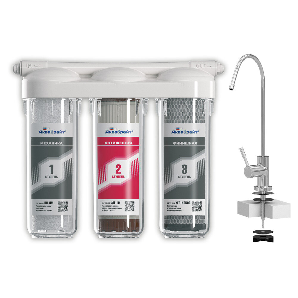 Система очистки воды абф-триа-антижелезо 3 ступени (под мойку, с краном) Аквабрайт подарок женщине на 8 марта