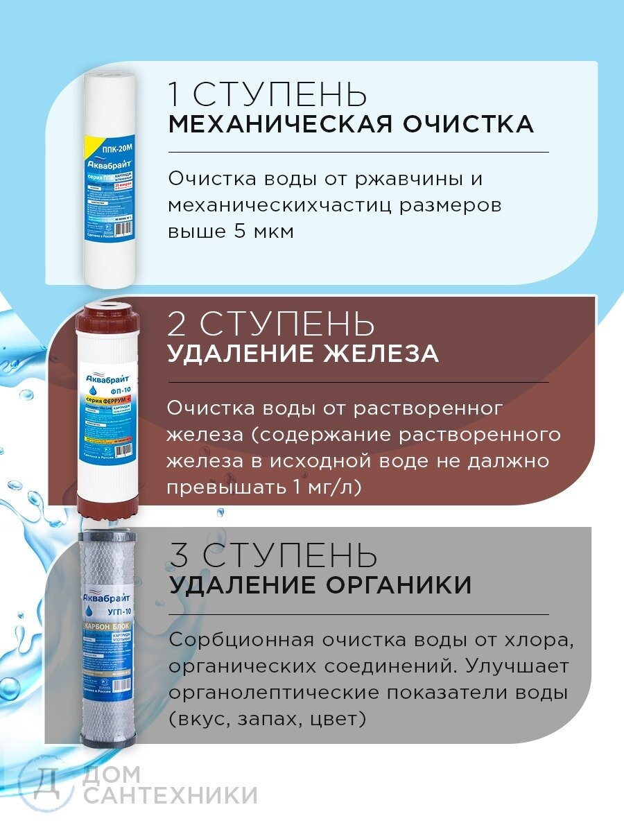 Система очистки воды 3 ступени аквабрайт абф-триа - антижелезо