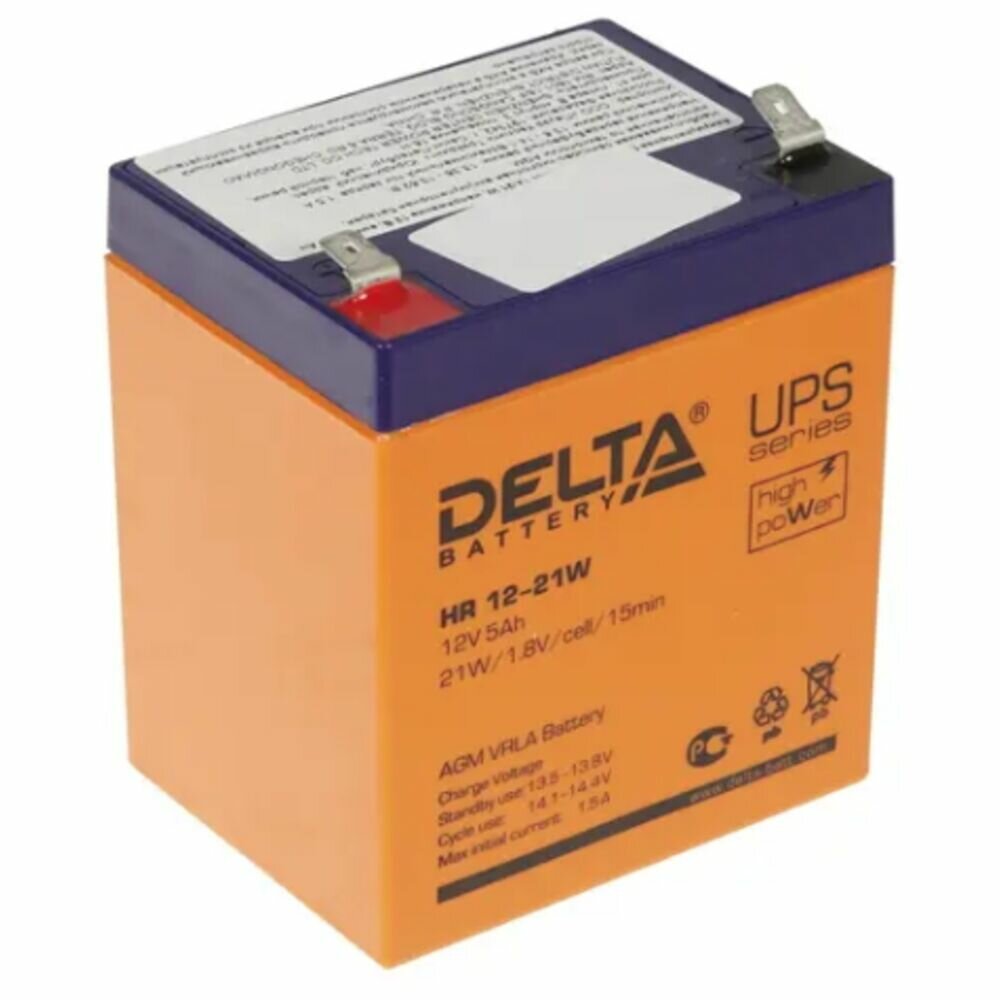 Аккумуляторная батарея Delta HR 12-21 W, 12 В 5 Ач, аккумулятор для ИБП, аккумулятор для UPS, аккумулятор для детского электромобиля, аккумулятор для кресла-каталки, аккумулятор для солнечной панели, аккумулятор для ветрогенератора