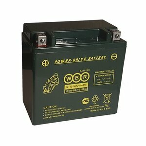 Аккумулятор WBR MT1214 (12V / 15Ah)YTX16-BS, YB16B-A для мотоциклов, скутеров, гидроциклов, квадроциклов, снегоходов и мотовездеходов