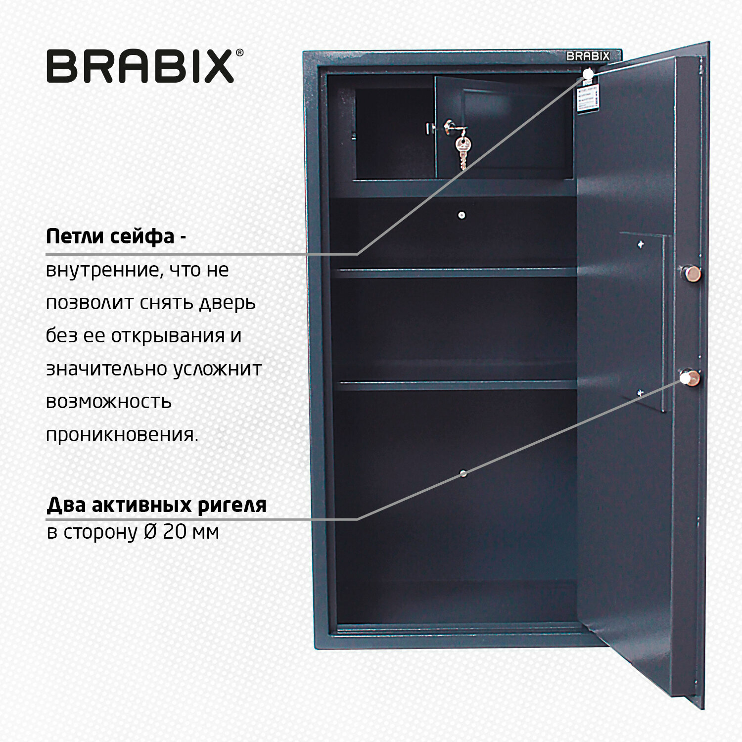 Сейф BRABIX «КМ-900Т», 900×470×400 мм, 51 кг, ключевой замок + 2 полки, трейзер, крепление к стене, 291168