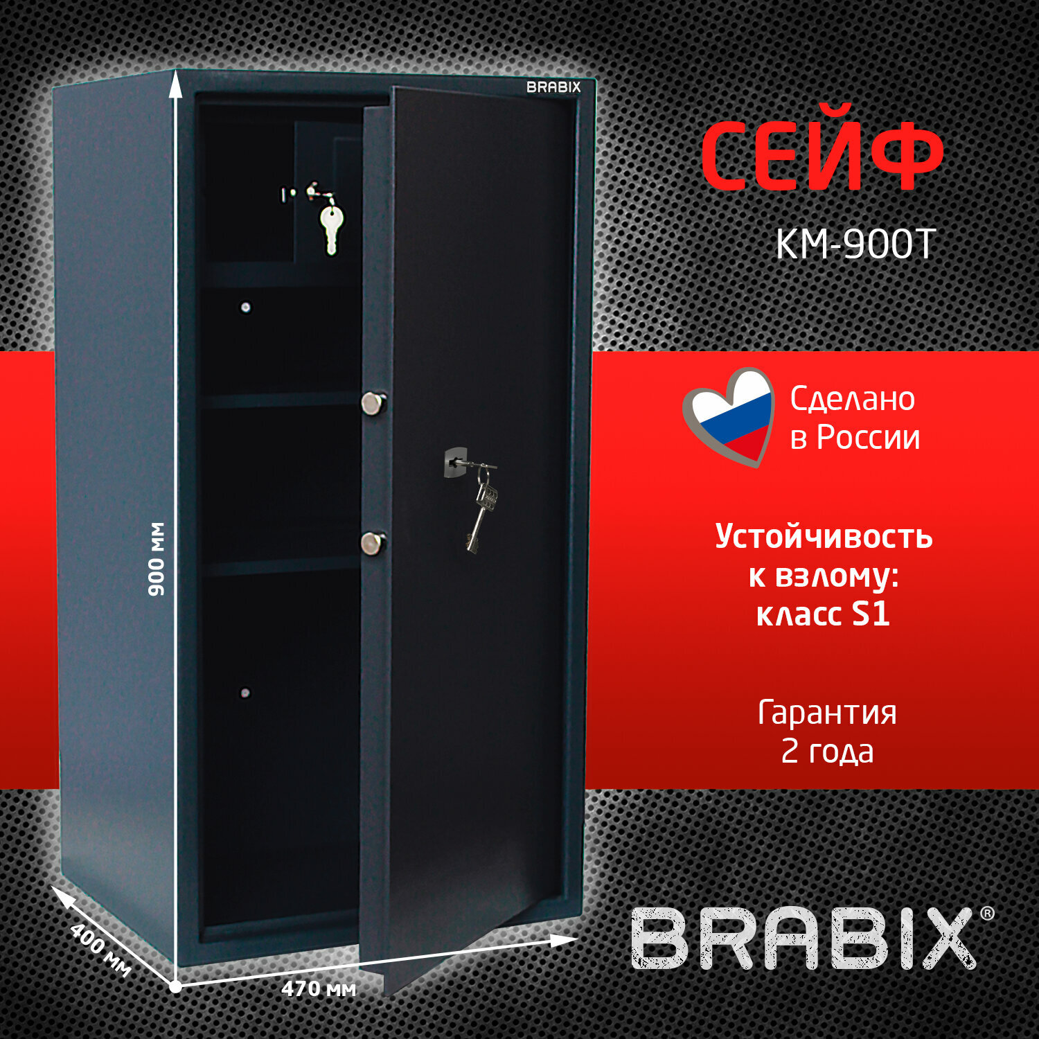 Сейф Brabix "КМ-900Т", 900х470х400 мм, 51 кг, ключевой замок + 2 полки, трейзер, крепление к стене