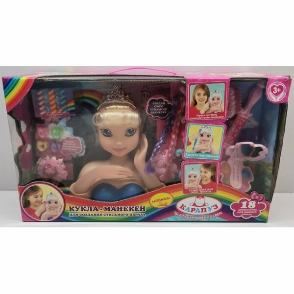 Кукла-манекен 18 см, с 18 аксессуарами для волос, в кор. Карапуз