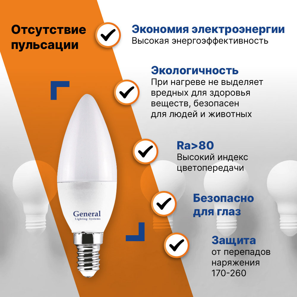 General свеча C37 E14 10W 4500K 4K 35х105 пластик/алюм GLDEN-CF-10-230-E14-4500, 682800 интересное: