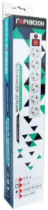 Cетевой фильтр (stabilizer) Гарнизон, 0,5 м 6 розеток белый. для UPS, ЕНW-0