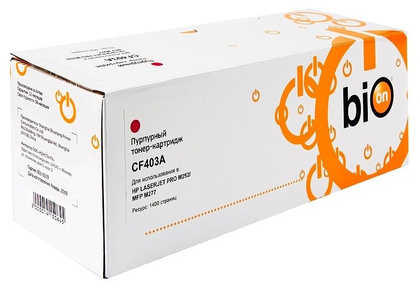 Bion Cartridge Bion CF403A Картридж для HP Color LaserJet Pro M252n M252dn MFP277dw 277n 1400 стр. , Пурпурный